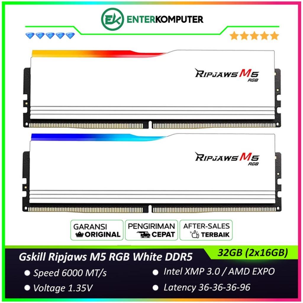 Gskill Ripjaws M5 RGB White DDR5 PC48000 6000MHz 32GB (2x16GB) / RAM 32GB