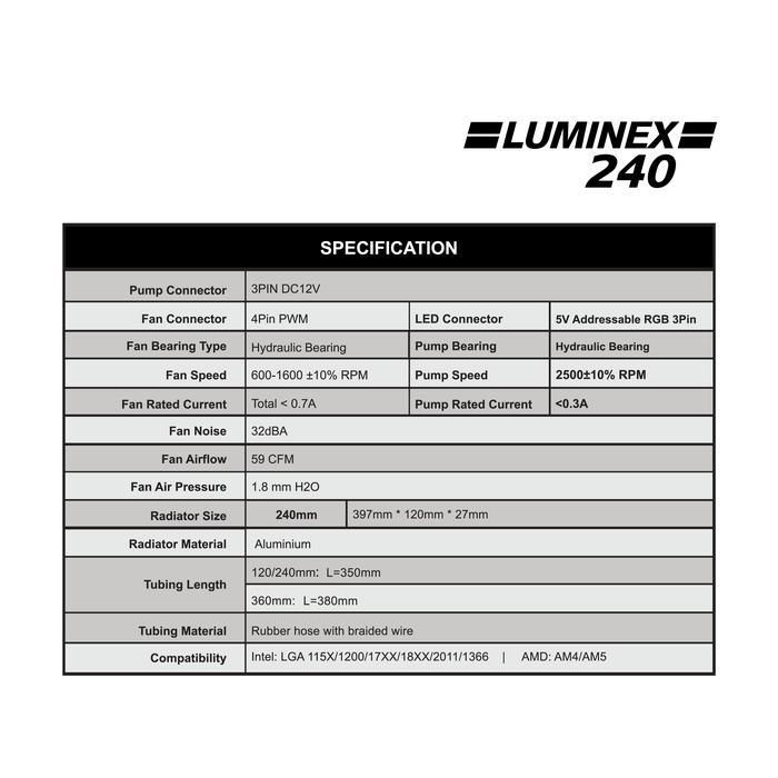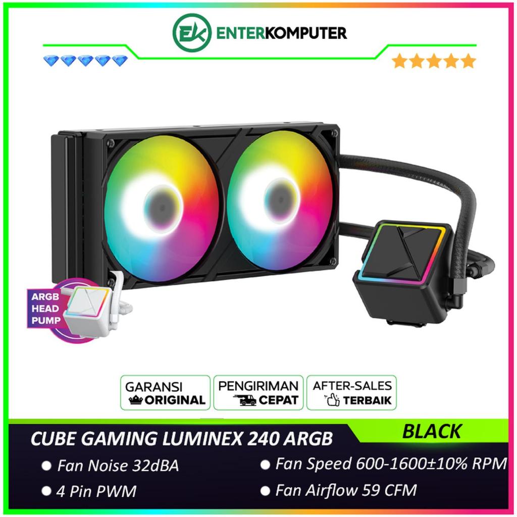 CUBE GAMING LUMINEX 240 ARGB BLACK PERFORMANCE FAN Liquid Cooler - 2x 120 PWM ARGB Fan with ARGB Lighting Pump Head
