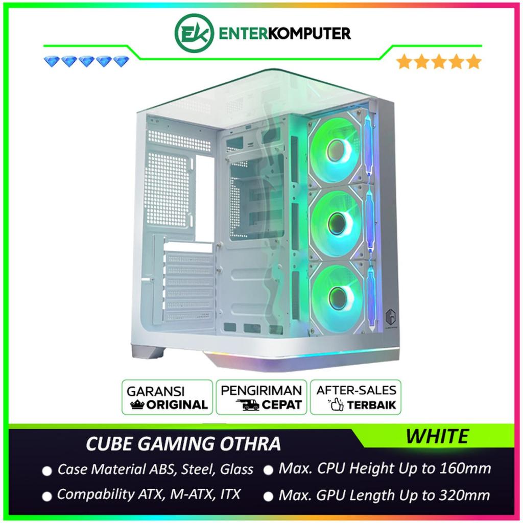 CUBE GAMING OTHRA WHITE - ATX Gaming Case - Panoramic View - Aesthetic Dual Chamber / Casing PC Gaming