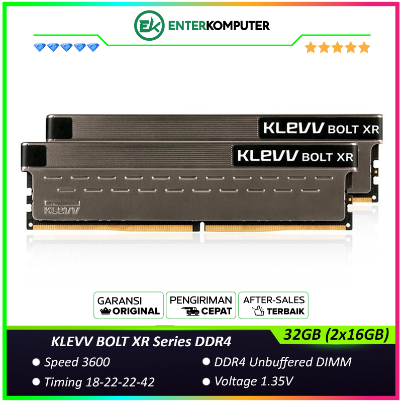 KLEVV DDR4 BOLT XR Series PC28800 3600MHz Dual Channel 32GB (2X16GB) - KD4AGU880-36A180C