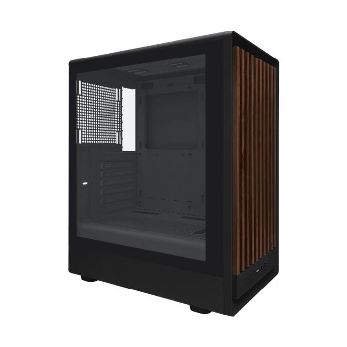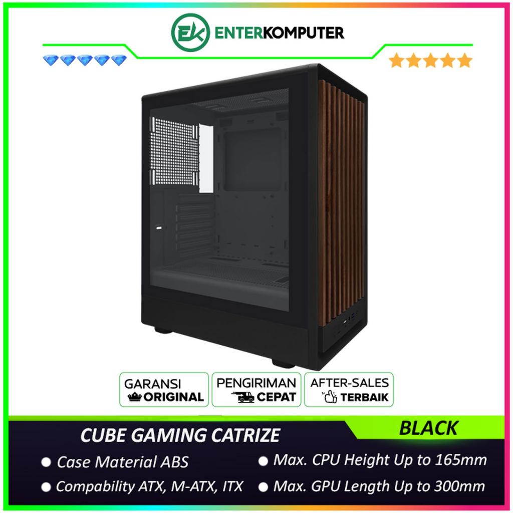 CUBE GAMING CATRIZE BLACK - ATX Gaming Case - Front Mesh with WOOD Exotic Design & Left Side Tempered Glass / Casing PC Gaming