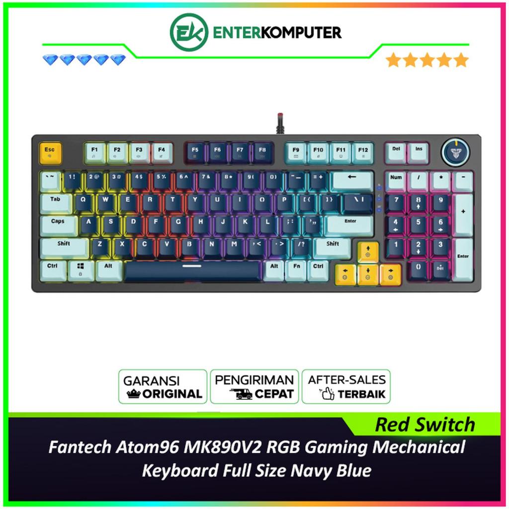 Fantech Atom96 MK890V2 RGB Gaming Mechanical Keyboard Full Size - Navy Blue (Red Switch)