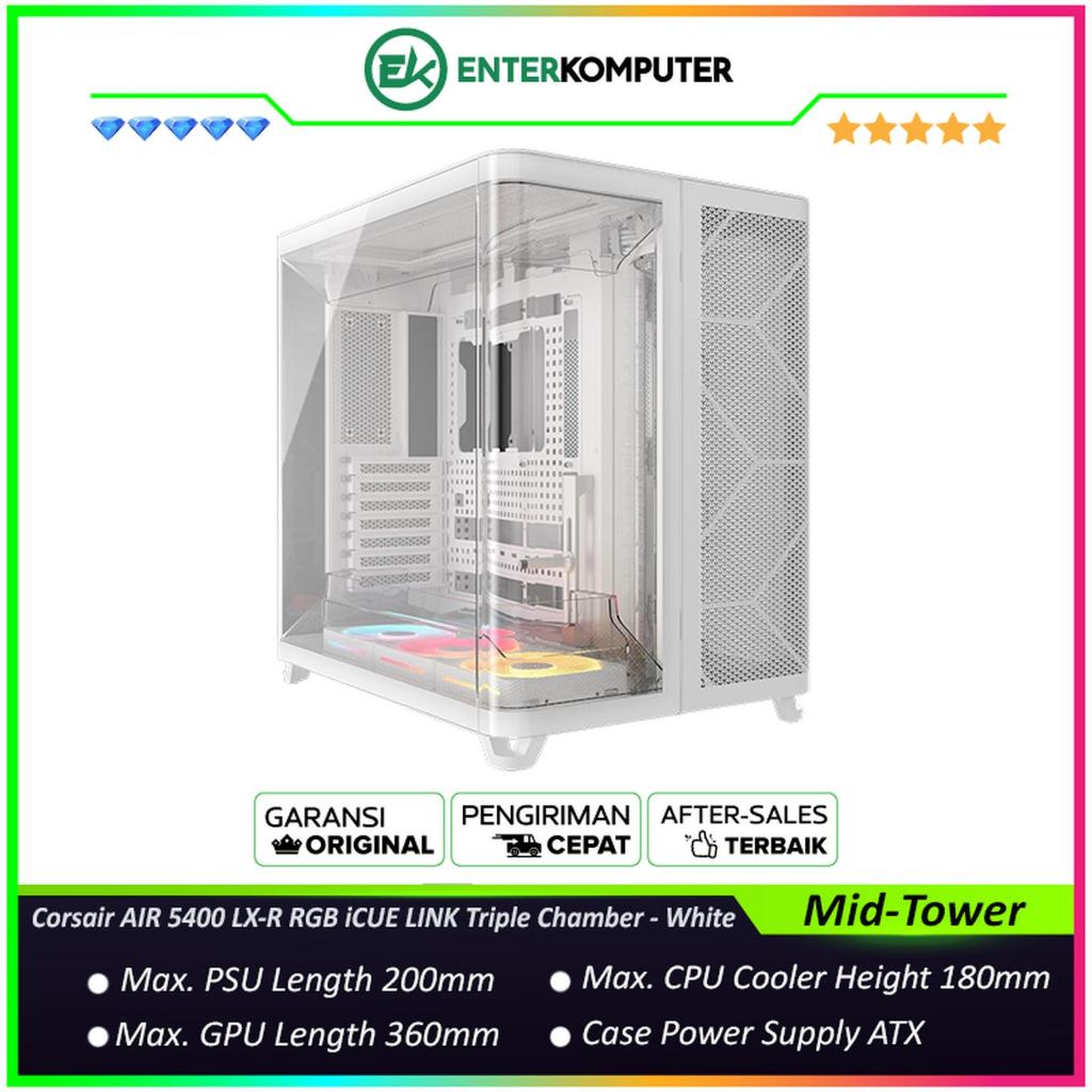 Corsair AIR 5400 LX-R RGB iCUE LINK Triple Chamber Mid-Tower PC Case - White