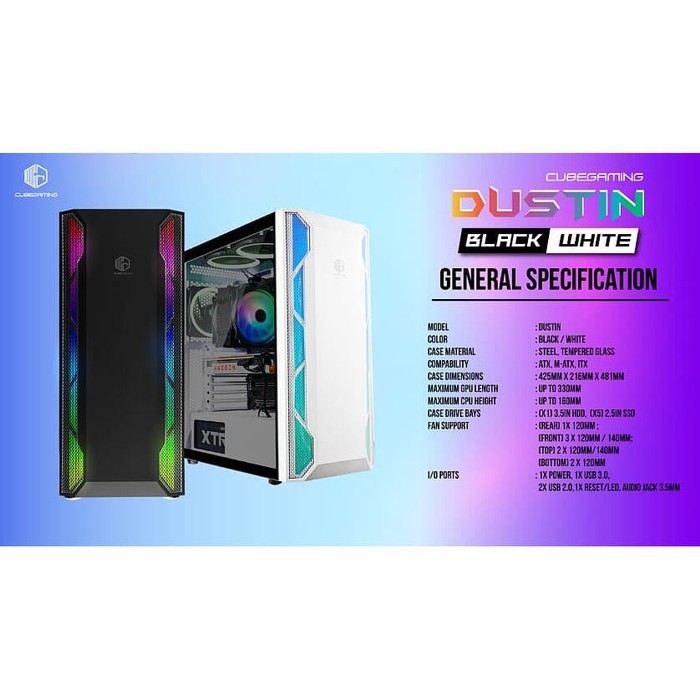 CUBE GAMING DUSTIN WHITE - ATX - LEFT SIDE TEMPERED GLASS - PSU COVER - RGB FRONT PANEL