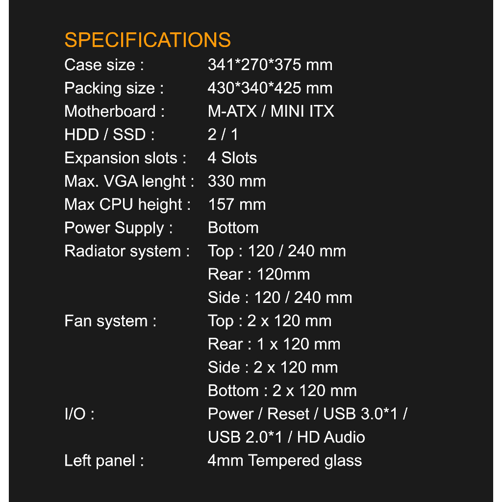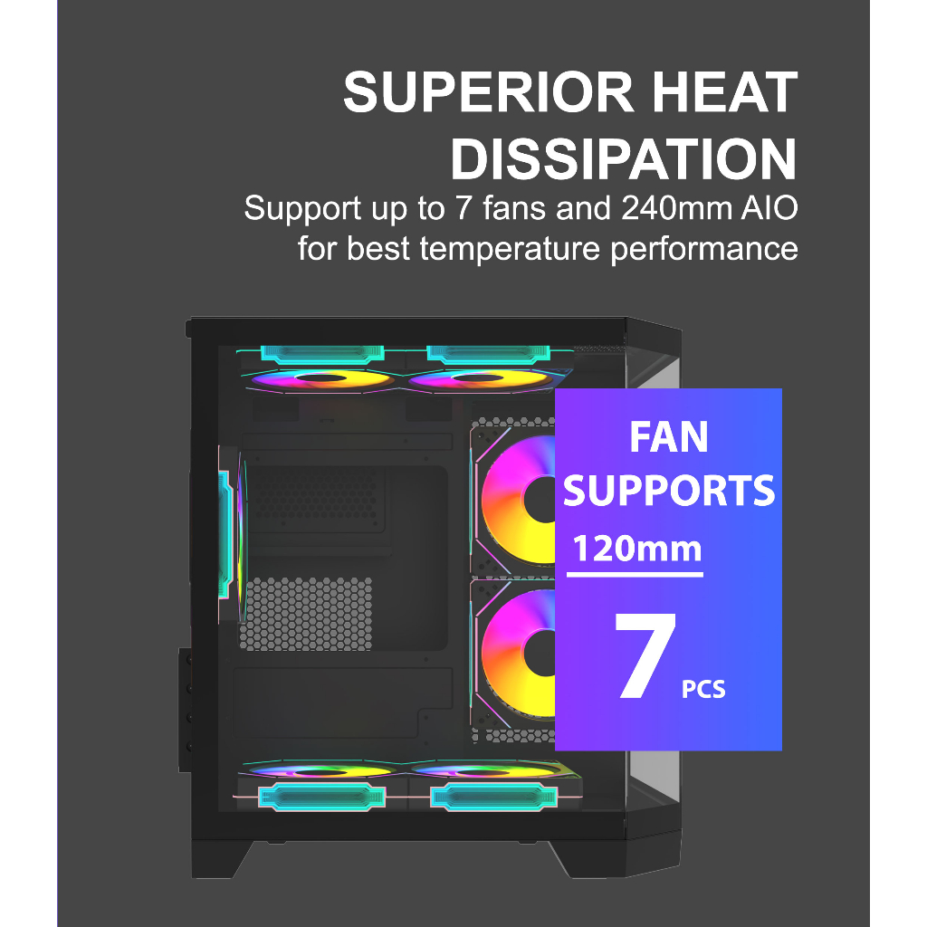 VenomRX Titan 3D Mini Black Panoramic PC Casing 0FAN MATX
