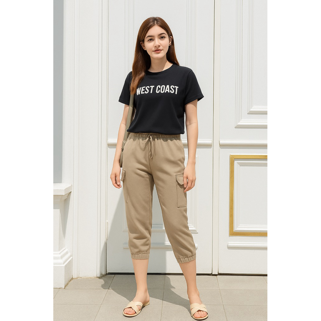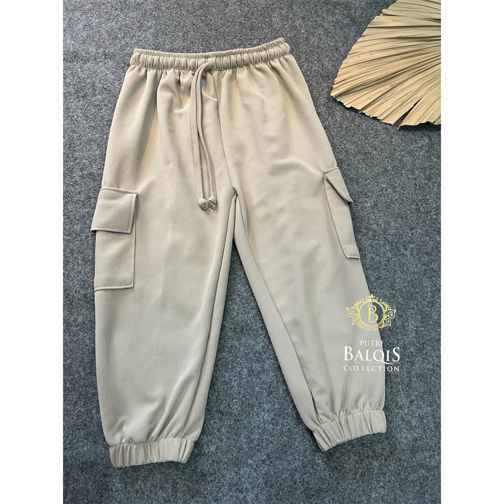 PB Celana Pendek Wanita Model Cargo Tali Serut Japan Knit