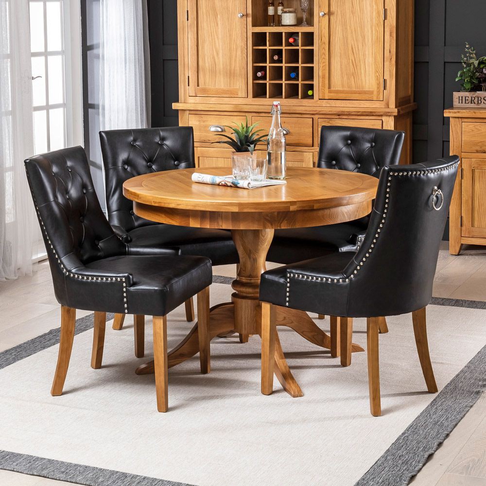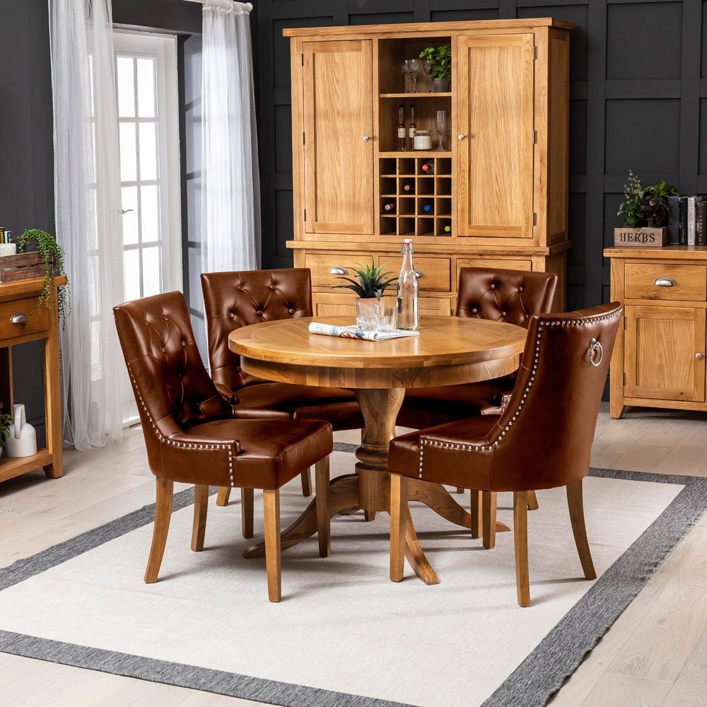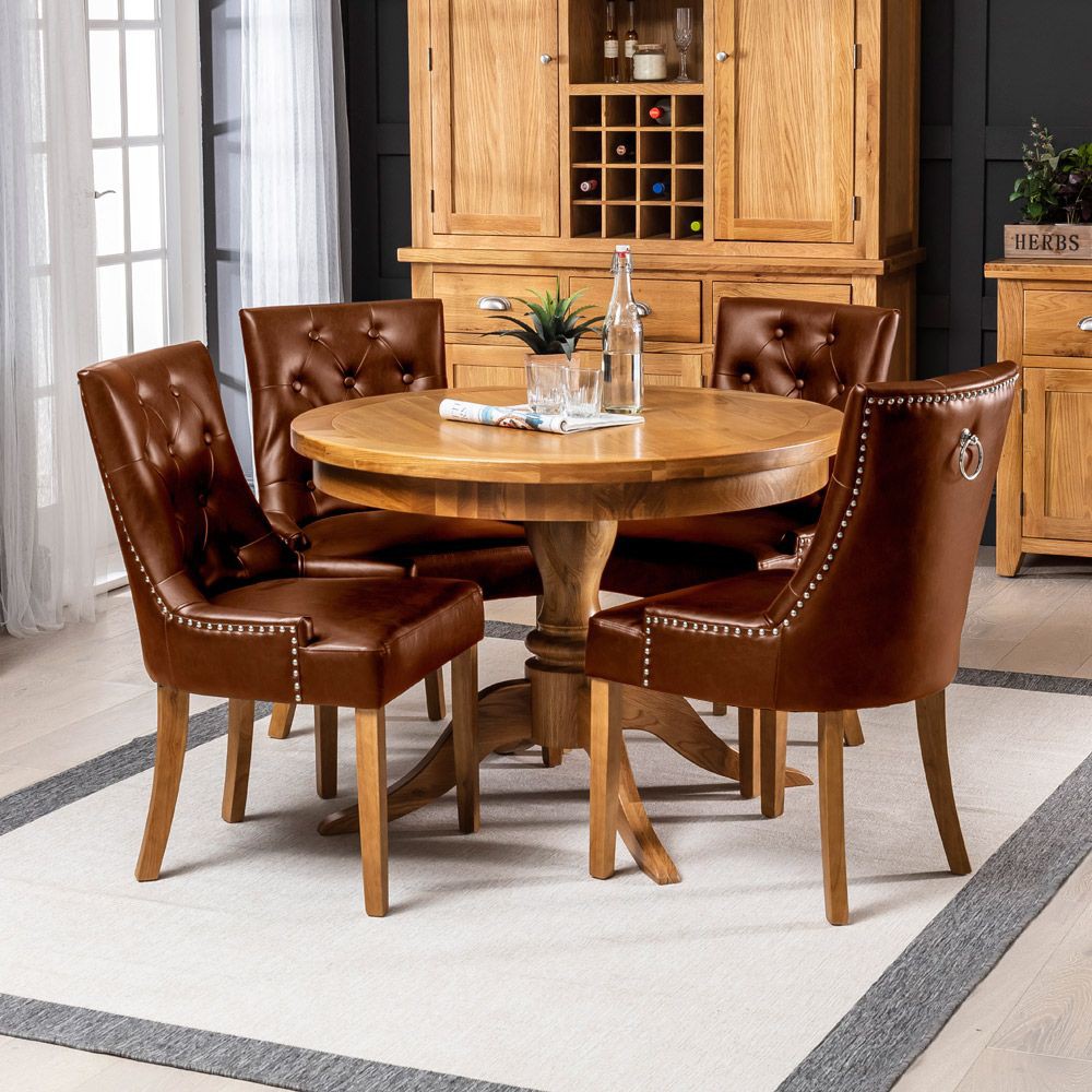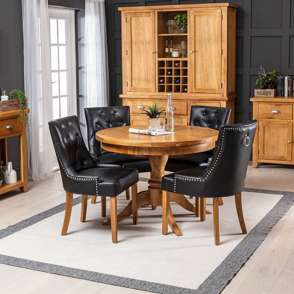 Solid Round Dining Table and 4 Leather Scoop Chairs - Set Meja Makan Elegan - BEST SELLER No. 5