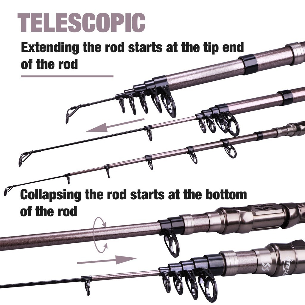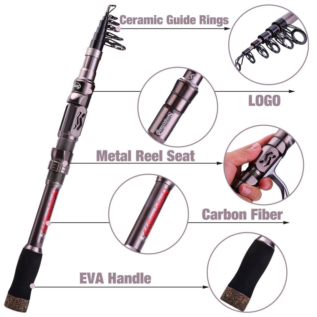 Sougayilang Joran Pancing Teleskopik Portabel 1,8m-3,6m Bahan Serat Karbon Ultra Ringan untuk Memancing di Air Tawar dan Air Asin