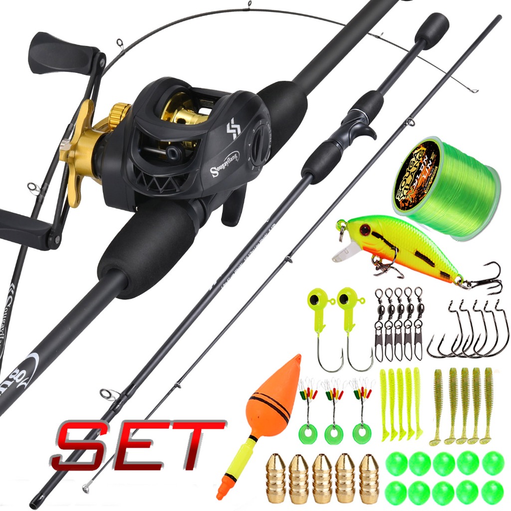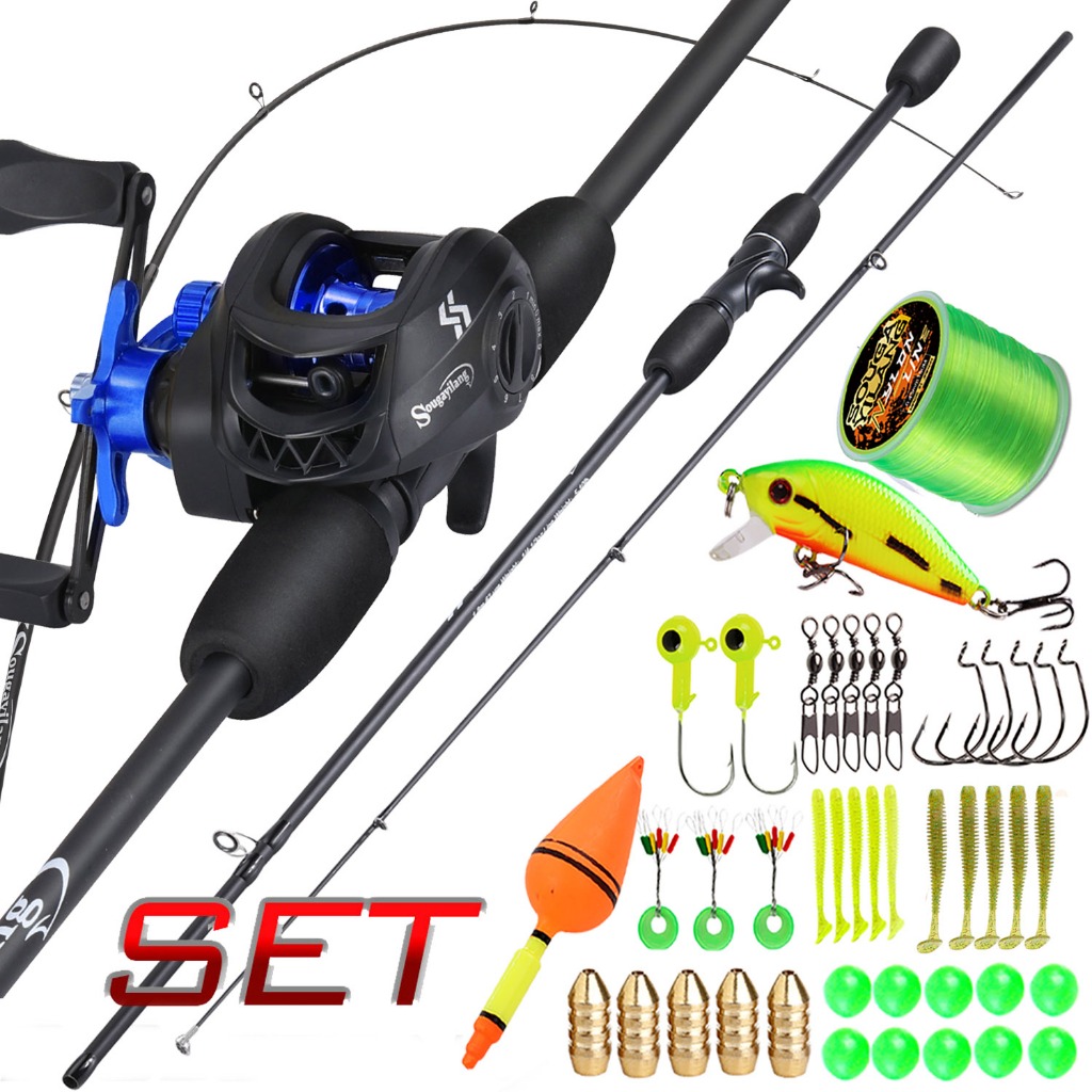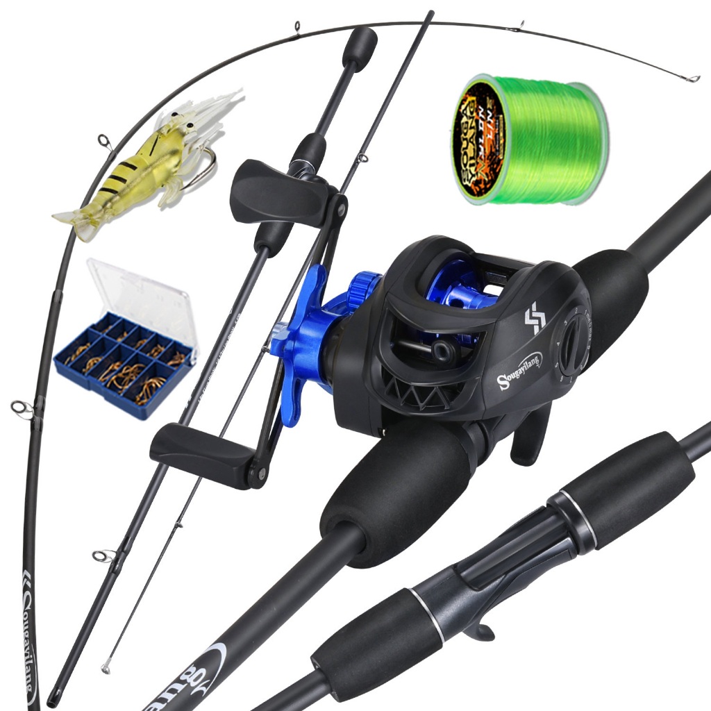 Sougayilang Joran Pancing Set 1.8m UL Carbon Fiber Fishing Rod with 4 Color Metal Spool 7.2:1 Gear Ratio Max Drag 10kg
