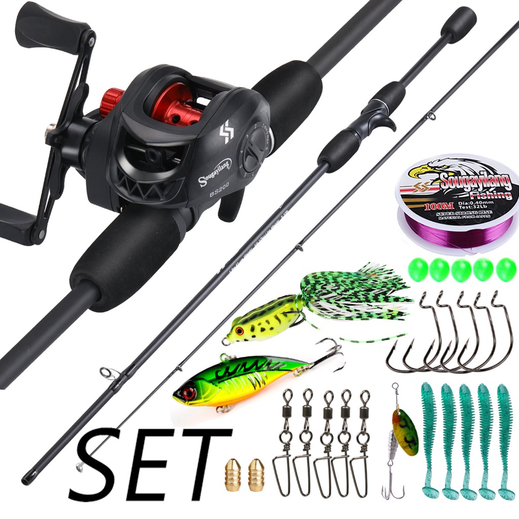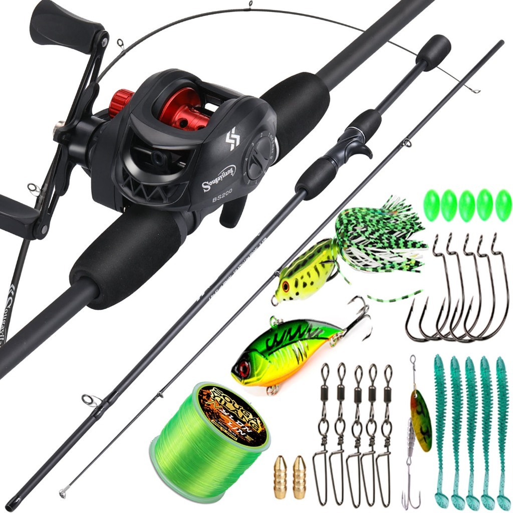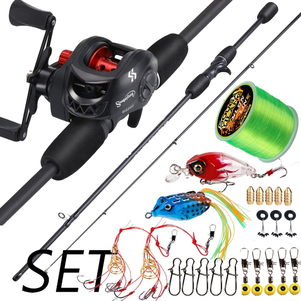 Sougayilang Joran Pancing Set 1.8m UL Carbon Fiber Fishing Rod with 4 Color Metal Spool 7.2:1 Gear Ratio Max Drag 10kg