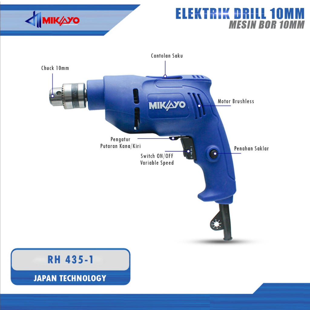 MIKAYO HOTMESIN BOR LISTRIK BOLAK BALIK UK.10MM bor tangan listrik bor beton bor tembok alat bor bor obeng bor kayu