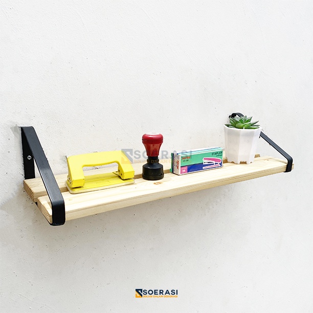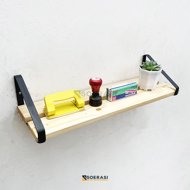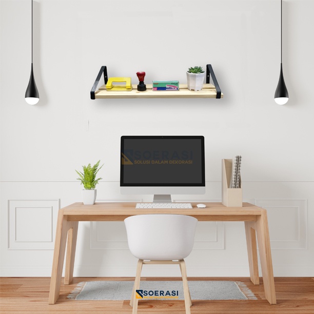 TRIN Rak Dinding Tempel Gantung Ruang Kerja Kantor Ambalan Susun Kayu dan Besi Penyimpanan Alat Tulis Buku Dokumen Hiasan Dekorasi Serbaguna Luas Minimalis Soerasi