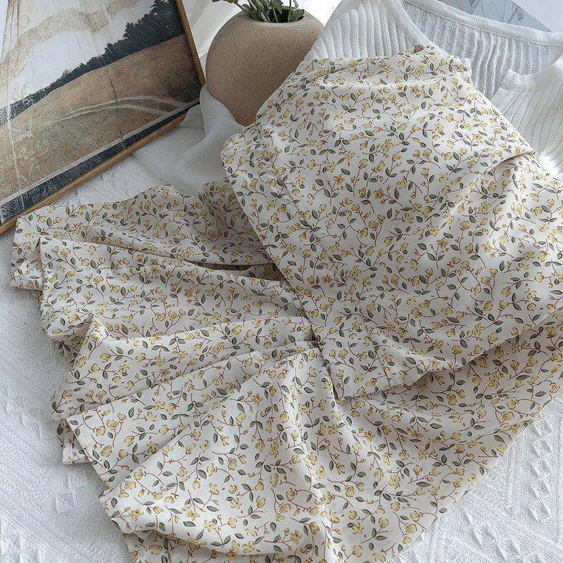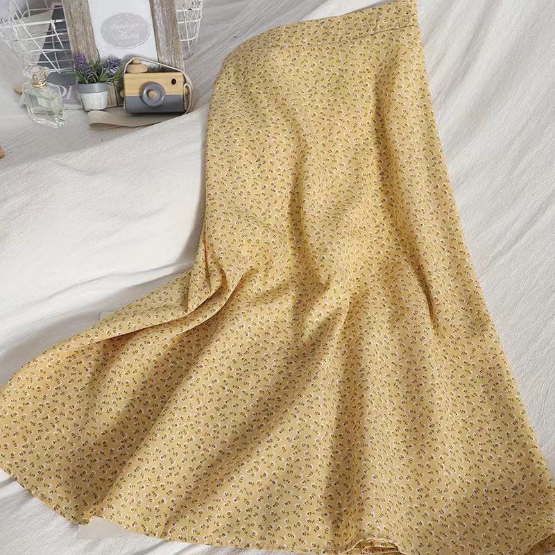 Rok Si Yunjia bunga wanita musim panas 2021 versi Korea baru dari pinggang tinggi sifon rampi