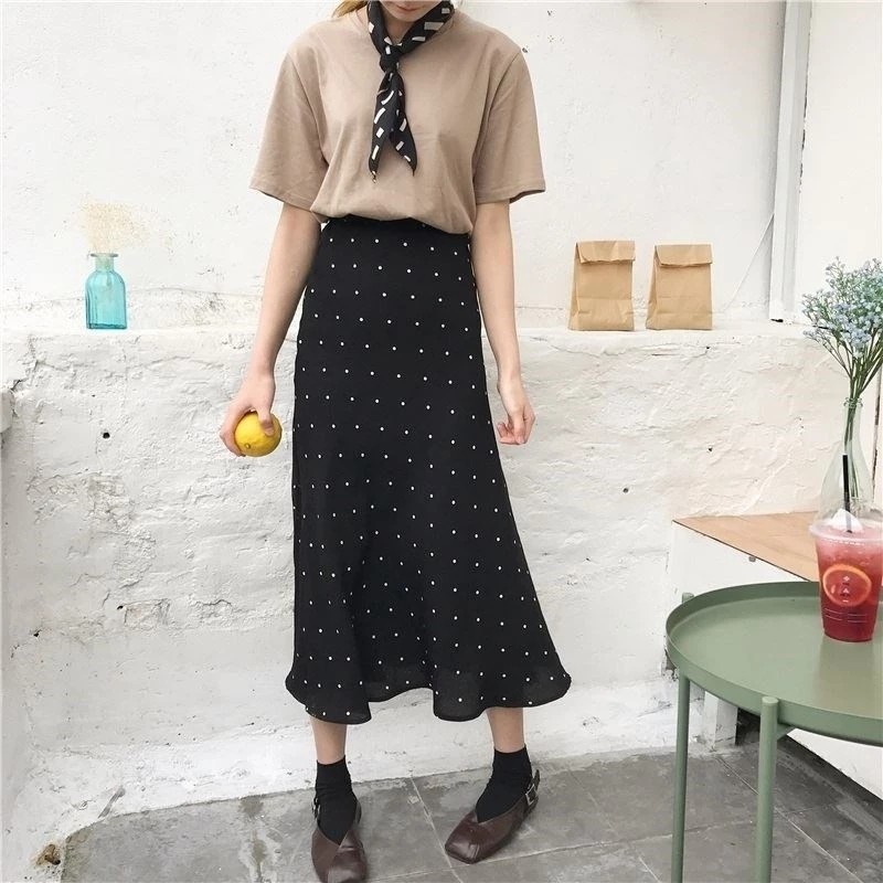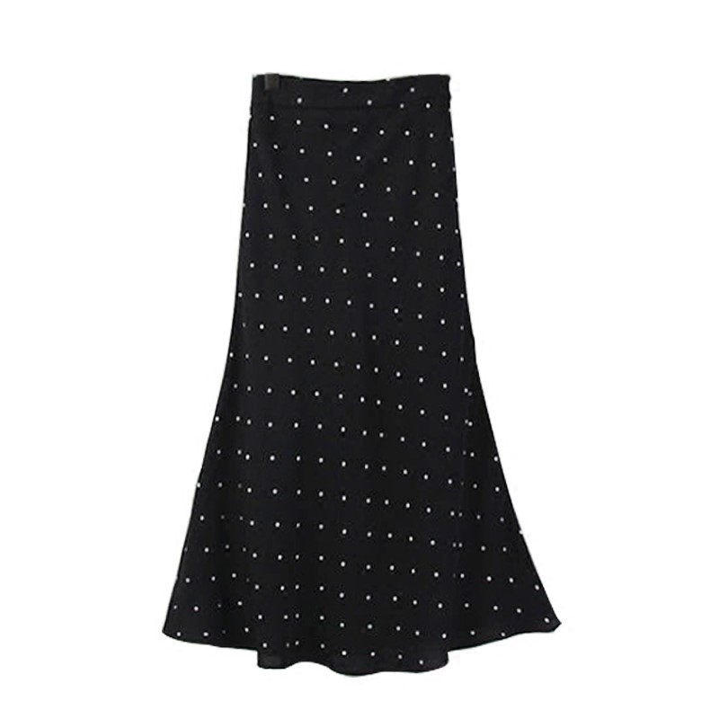 Rok midi wanita motif polkadot putri duyung ramping hitam cantik modis mix-match