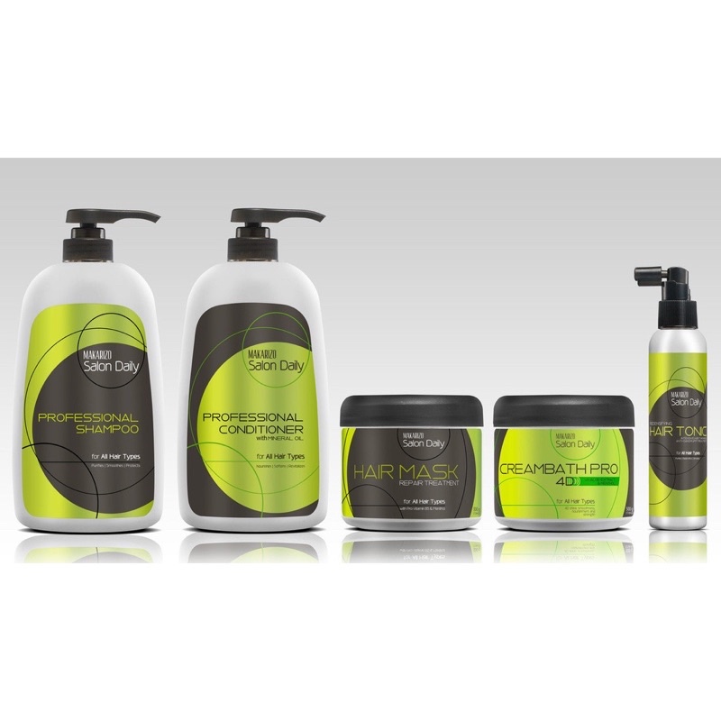 Makarizo Professional Salon Daily SERIES - Redensifying Hair Tonic Spray Bottle 150ml - Shampoo Pump Bottle 950 mL - Creambath Pro Pot 500 mL - Hair Mask Pot 500 gr