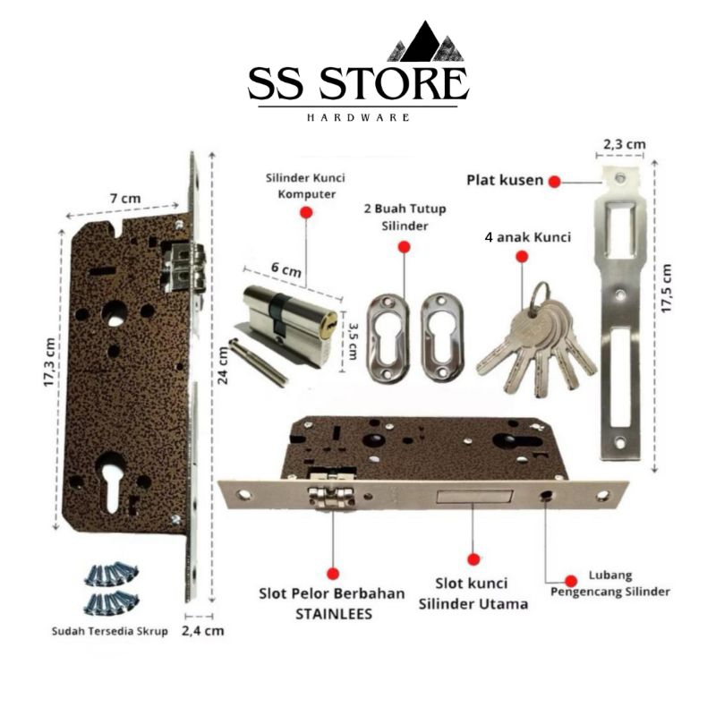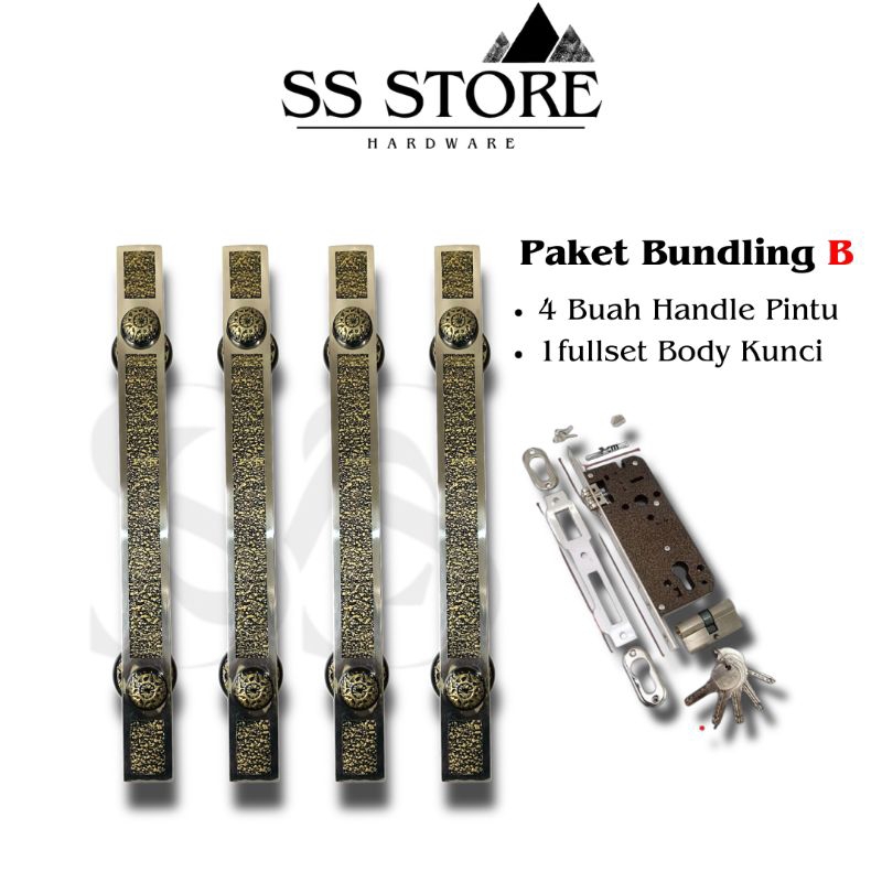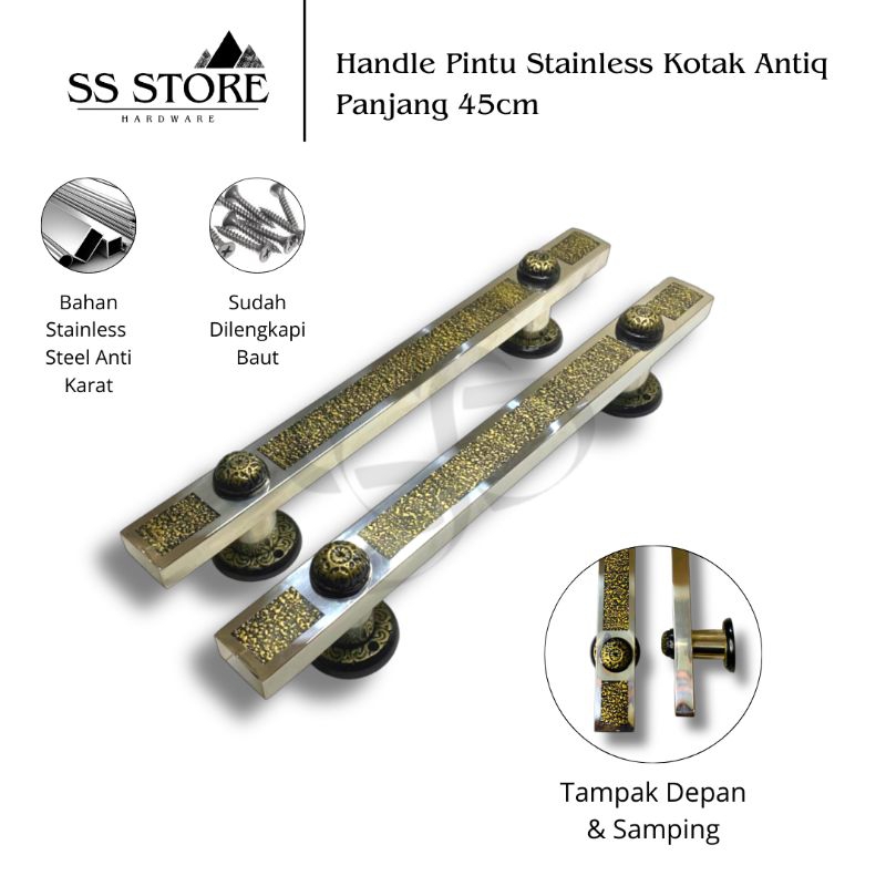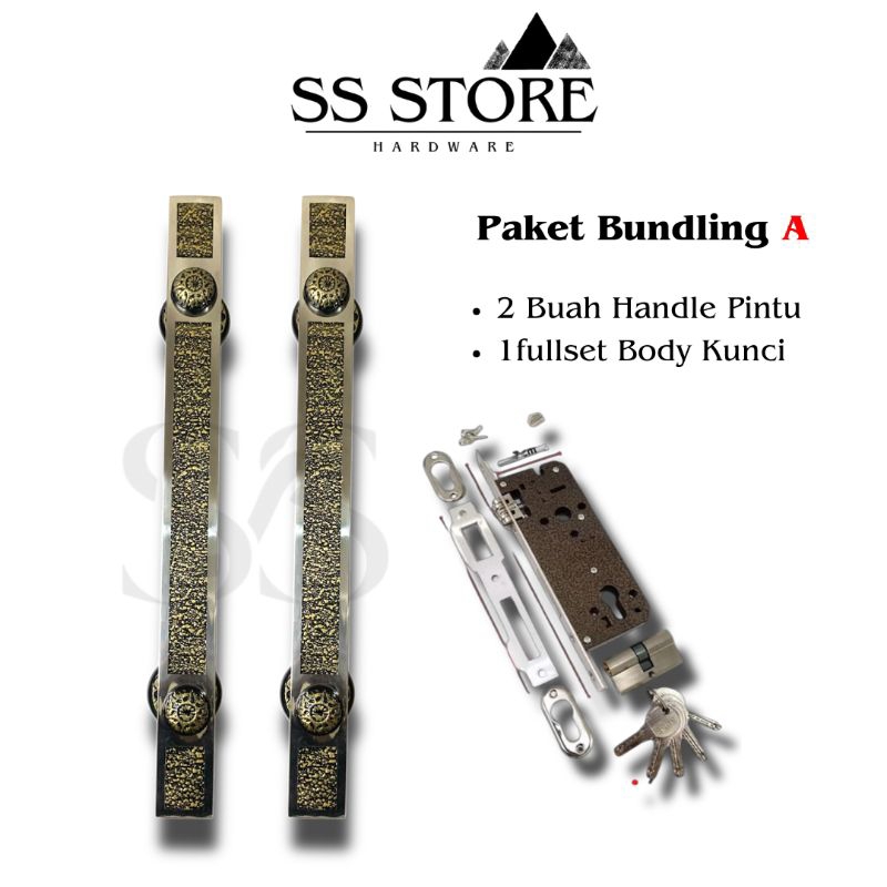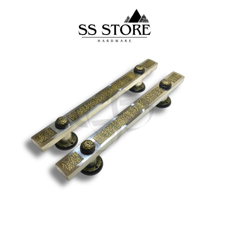 Handle Pintu Stainless Steel Kotak Gold Antique Panjang 45 + Body Pelor Kunci