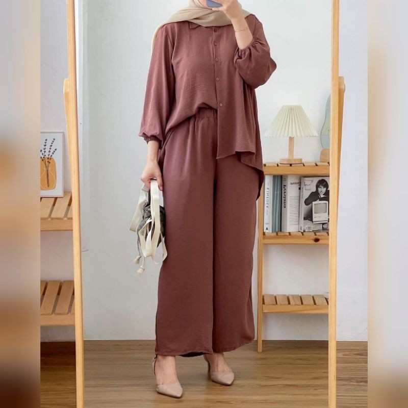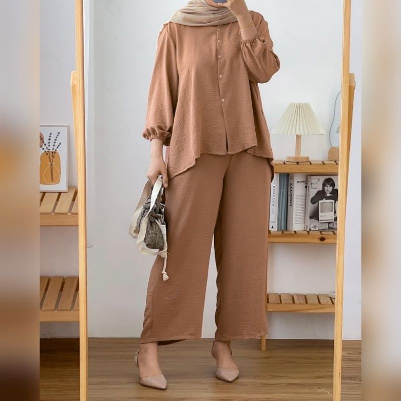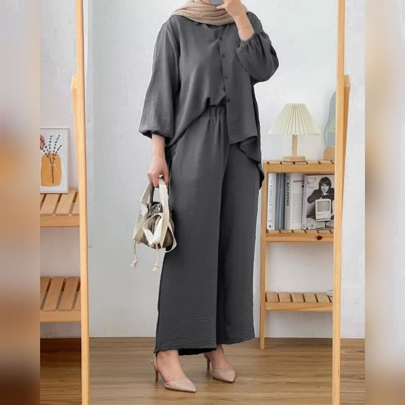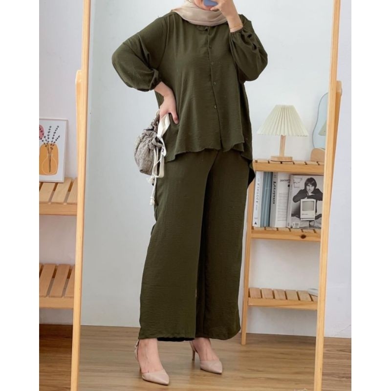 Baju Setelan Wanita Dewasa Wanset Hadiah Kado Cewek Setcelan Kekinian Korean Style One Set Lengan Panjang Pendek Atasan Bawahan Perempuan 2024 Satustel Outfit Kondangan Azalea One Set Premium | Setelan Crinkle Airflow