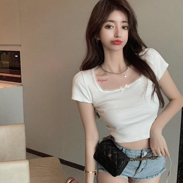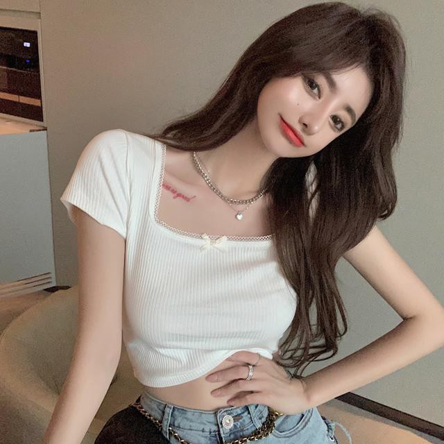 Dasi kupu-kupu leher persegi 2021 T-shirt pendek baru musim panas