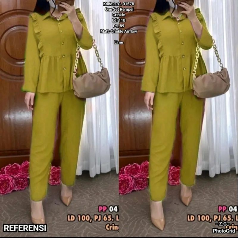 SETELAN REMPEL DADA KERAH LENGAN PANJANG//SETELAN KRINGKEL CRINCLE ATASAN WANITA