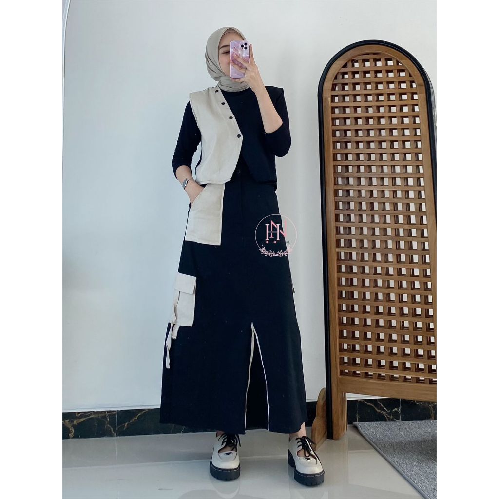 Selena Oneset Cotton Combed Setelan Rok Wanita Cargo
