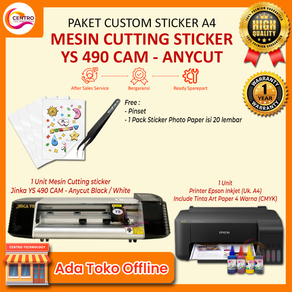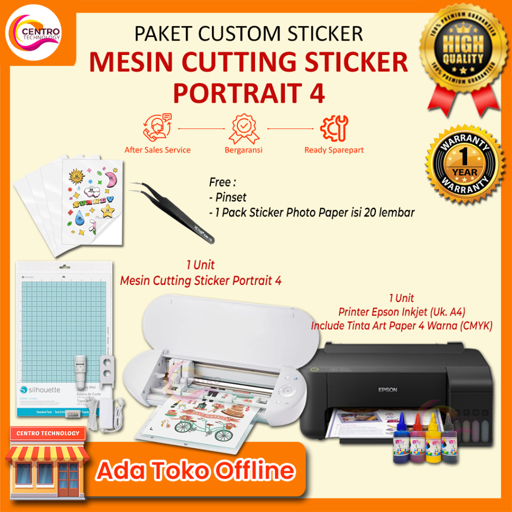 Paket Mesin Usaha Custom Stiker Lengkap - Cutting Sticker + Printer + Bahan + Software Desain | Cocok untuk Pemula & UMKM