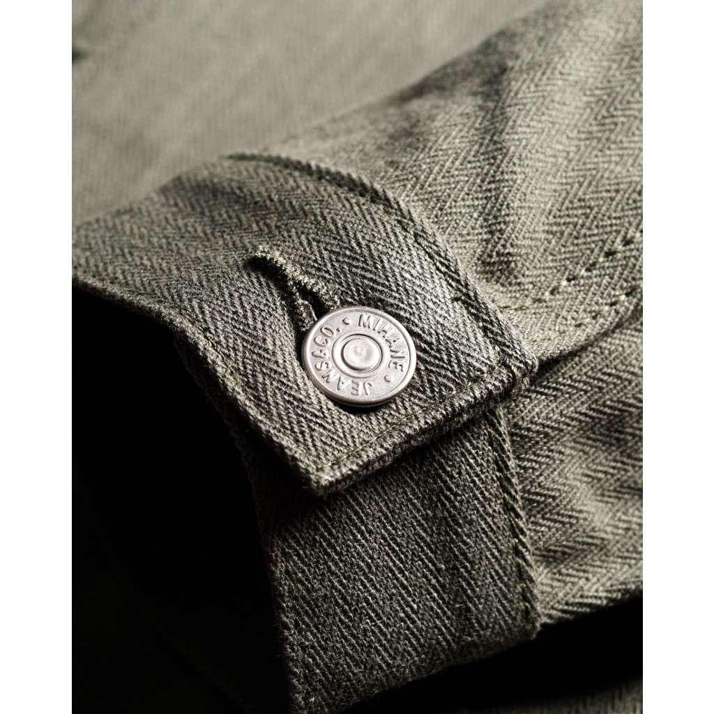 Mihane Jeans - Jacket Pria Denim Selvedge - EXT Type III 15oz Unsanforized Olive Herringbone Red Line Selvedge