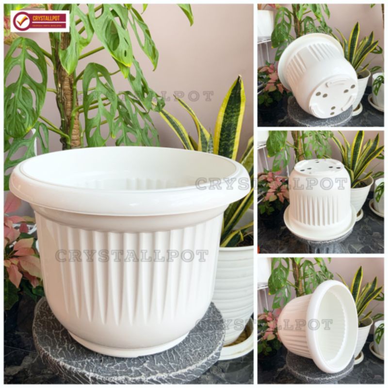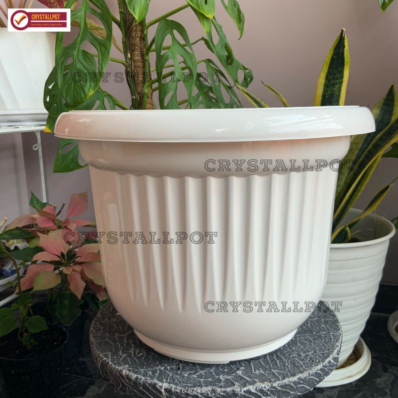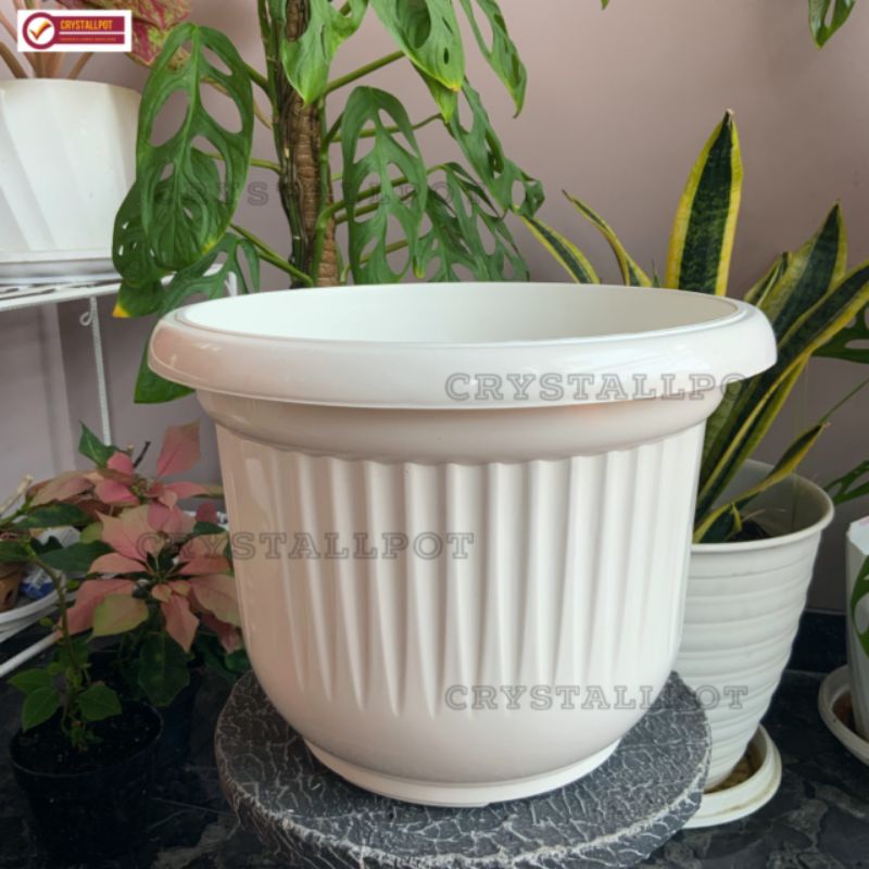 Pot Bunga Tanaman Plastik Putih GL Flamboyan 35 Kuping - FLAMBOYAN 35 PUTIH