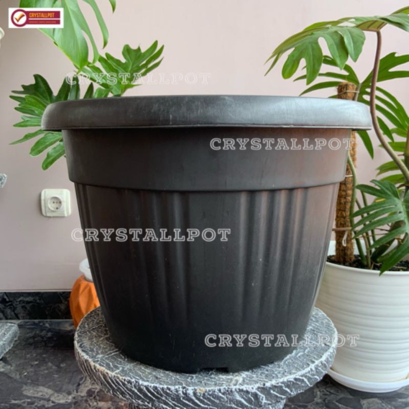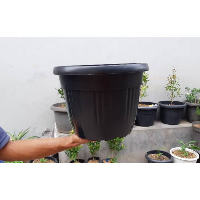 Pot Bunga Tanaman Plastik Grace 35 Hitam Kuping Bahan Tebal - GRACE 35 HITAM KUPING