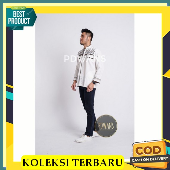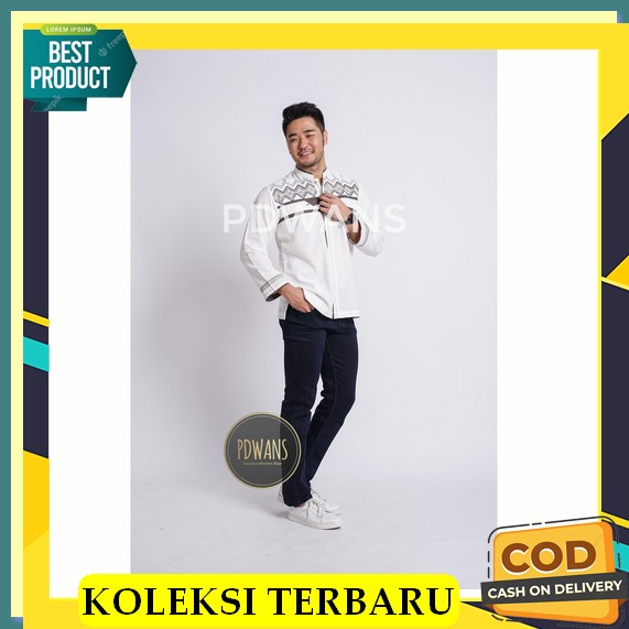 Koko Pria Lengan Panjang-Koko Batik Pria-Koko Orang Tua-Koko Anak Muda-Koko Pria Lengan Panjang-Koko Batik Terbaru Baju Koko Muslim Lengan Panjang Putih Bordir Pdwans - Rdpjg10