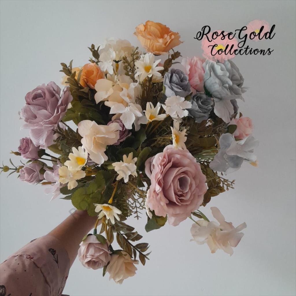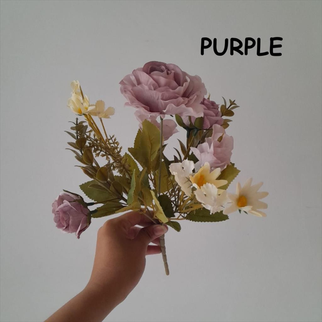 [1 PCS] Fall rose bunch Artificial Flower / 1 Batang Bunga Palsu / Tandan mawar musim gugur