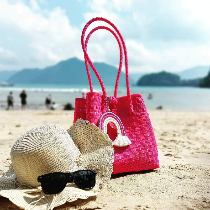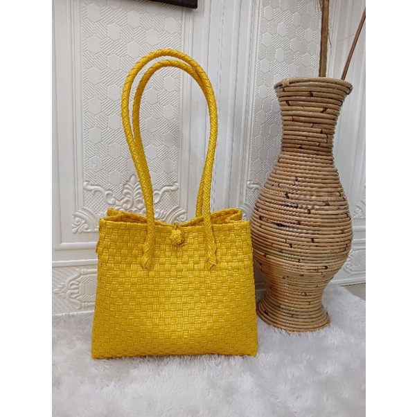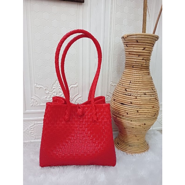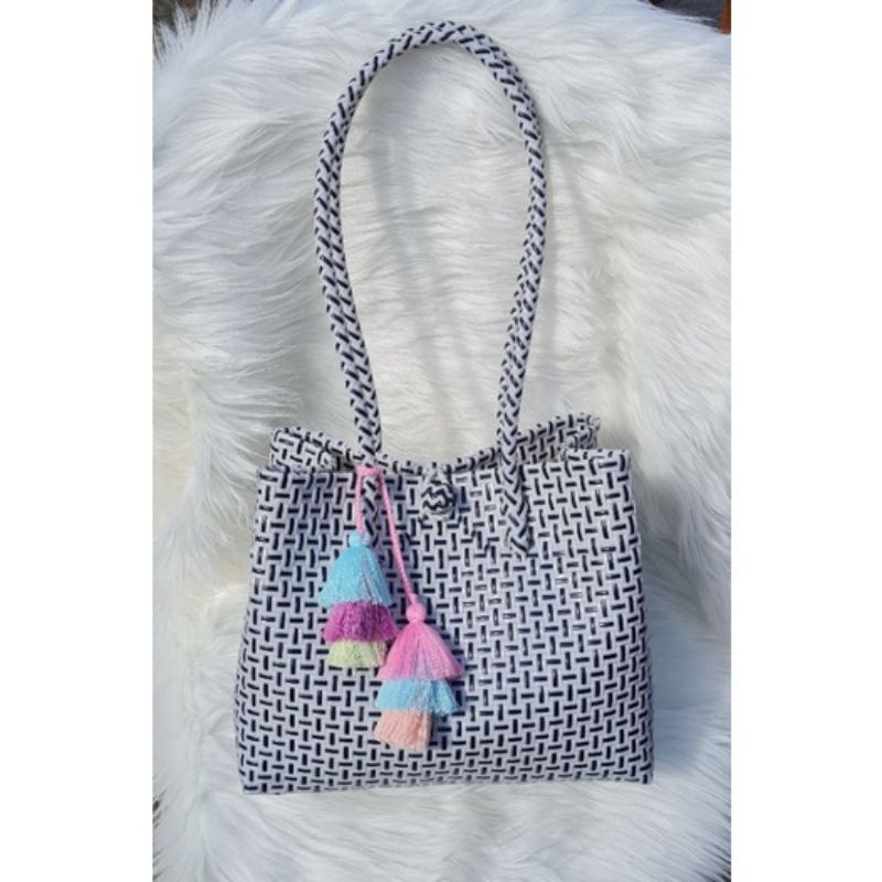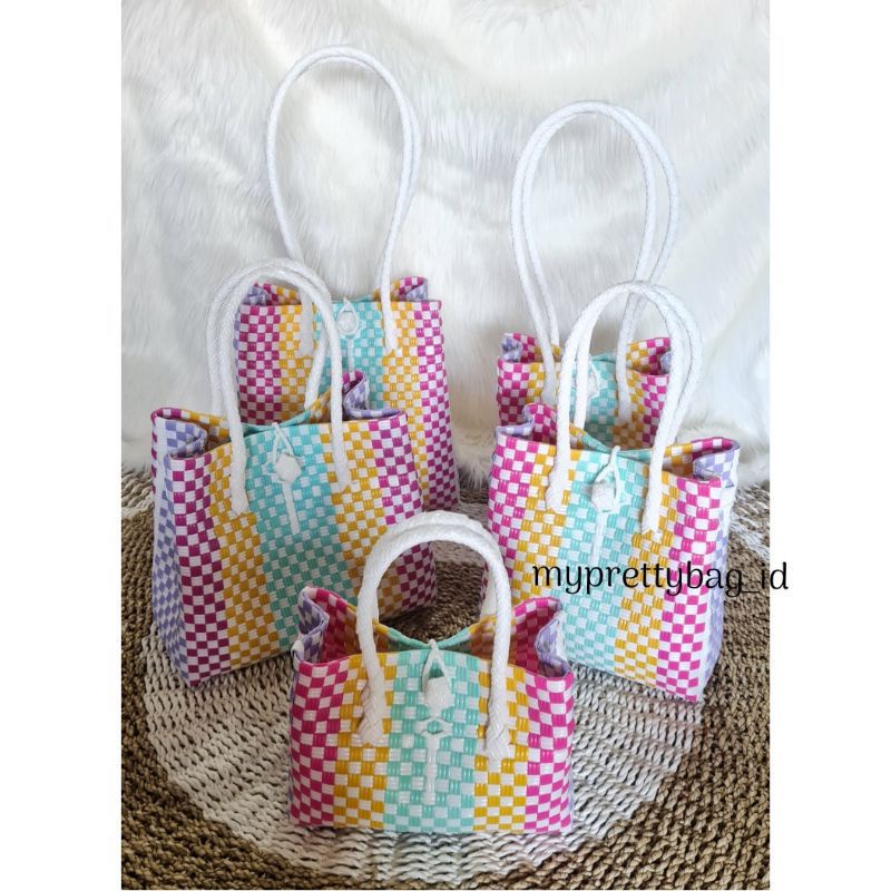 (TANPA ACCESORIES) TAS ANYAMAN JALI - JALI BAG - Tas Anyaman Plastik - Tote Bag