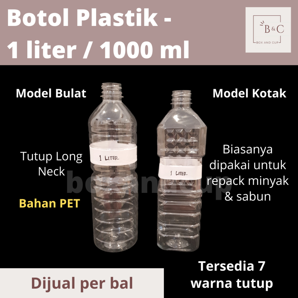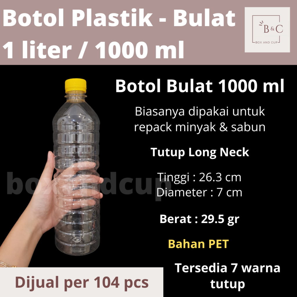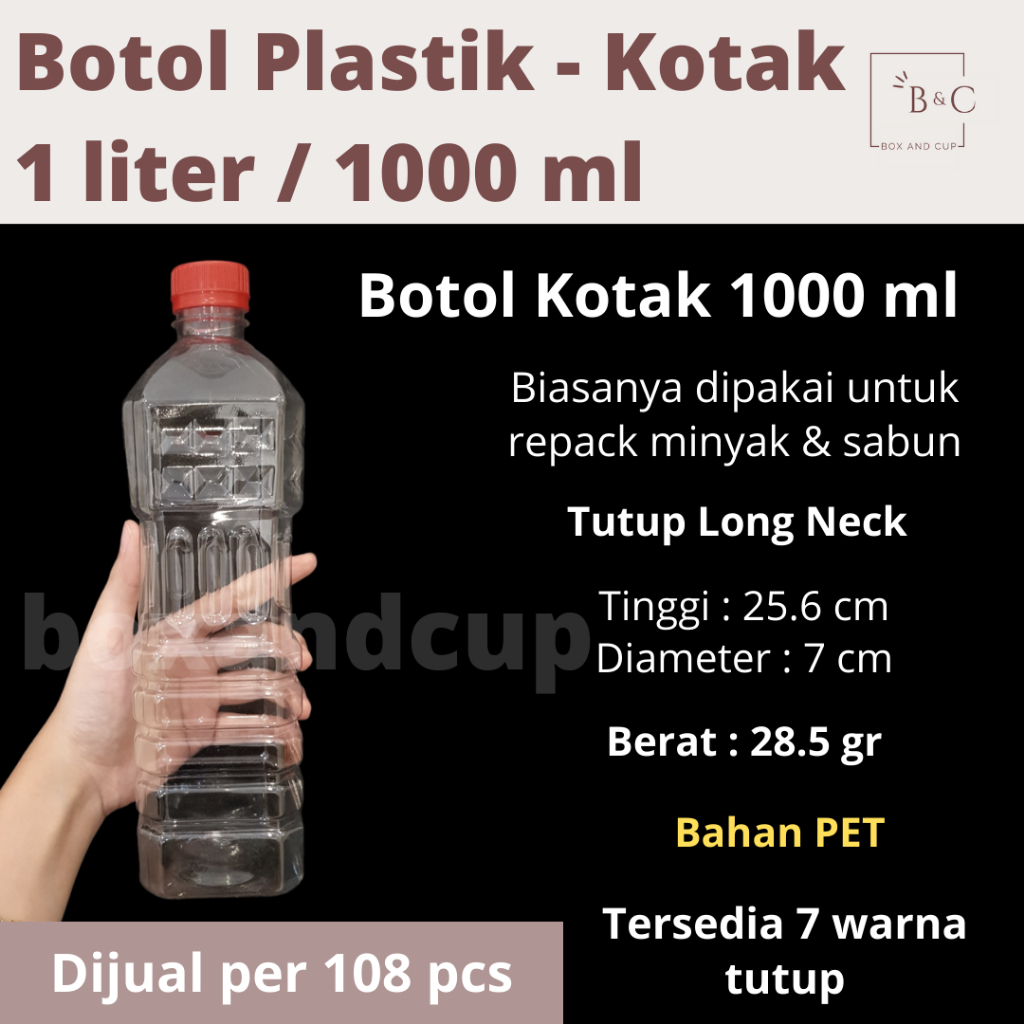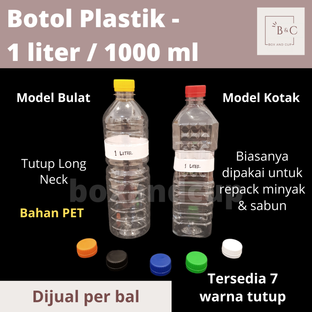 [104-108 PCS] Botol Plastik Bulat Kotak PET Bening 1000 ml / 1 Liter + Tutup untuk Repack Sabun & Minyak Murah