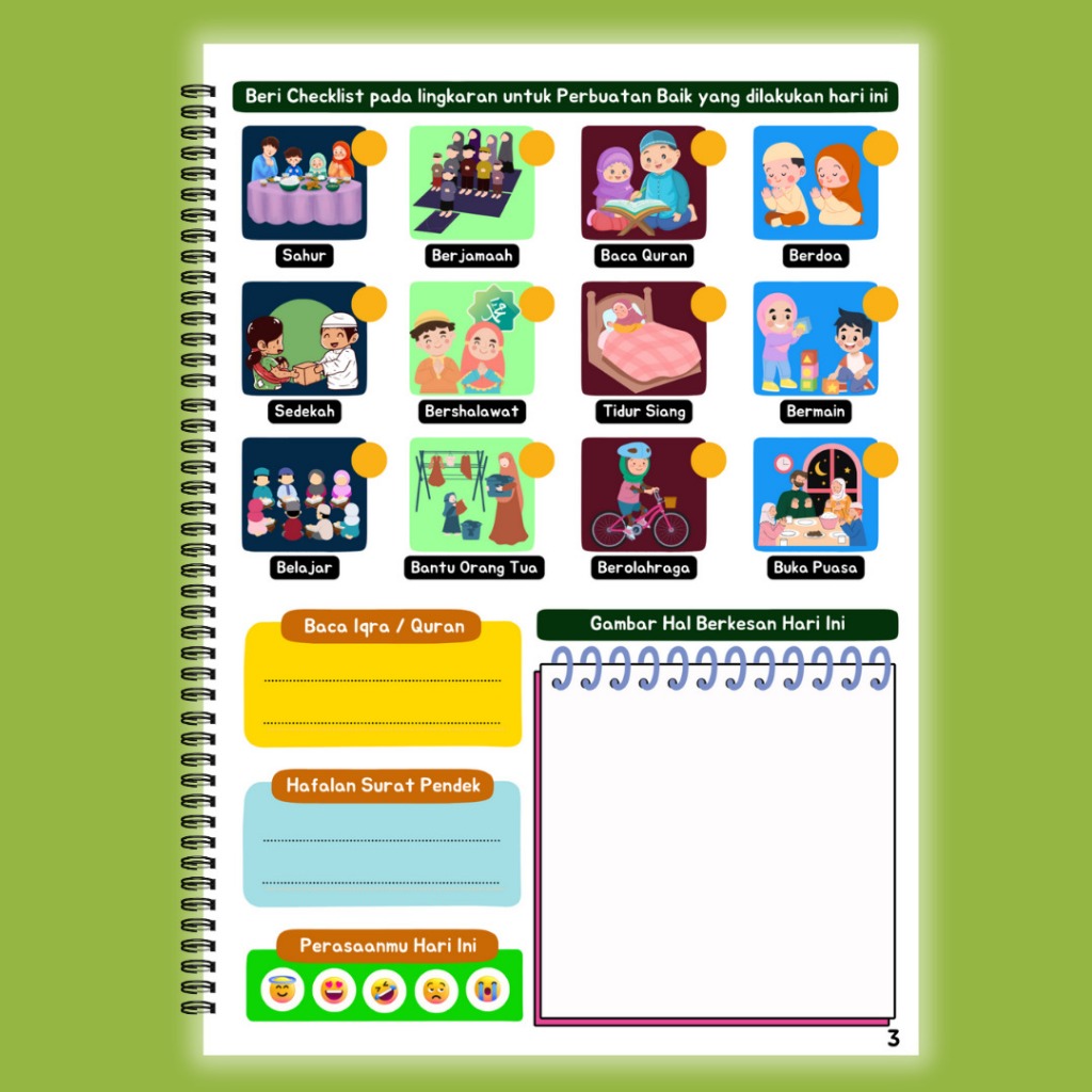 Jurnal Ramadhan Anak PAUD TK SD Buku Agenda Aktivitas Kegiatan Ramadan Planner Book Diary Kids