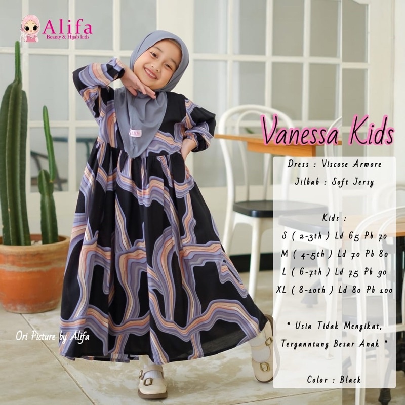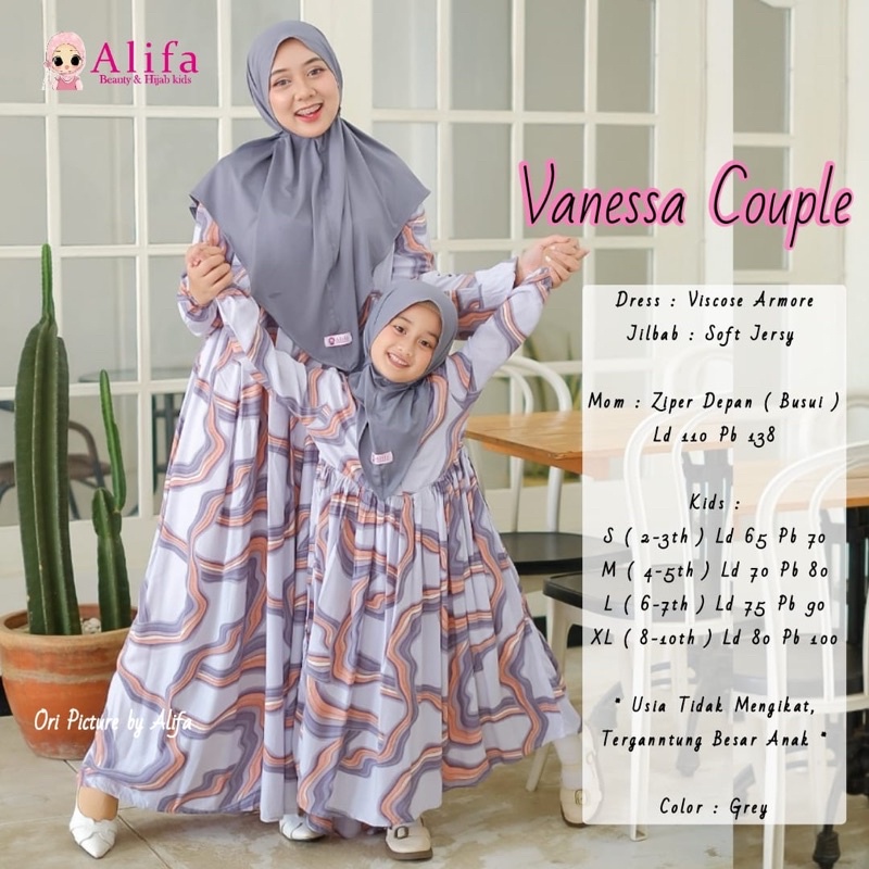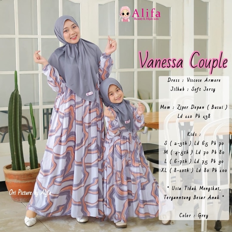VANEESA VANESSA DRESS COUPLE MOM & KIDS FREE HIJAB BY ALIFA (BOLEH PISAH)