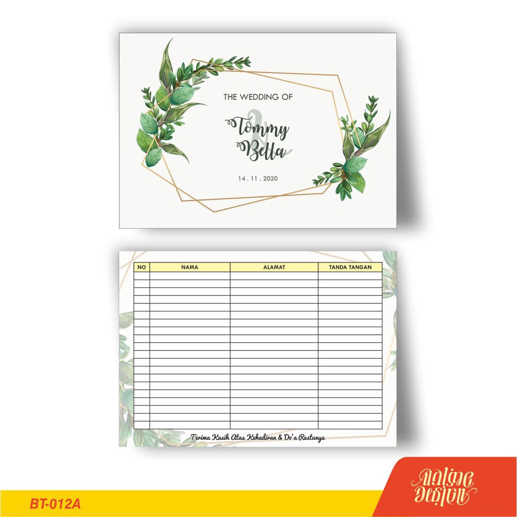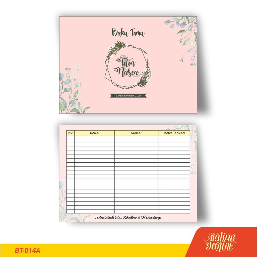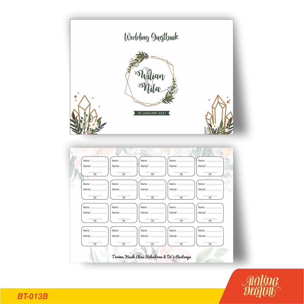 cetak buku tamu pernikahan murah unik custom nama | seri 2