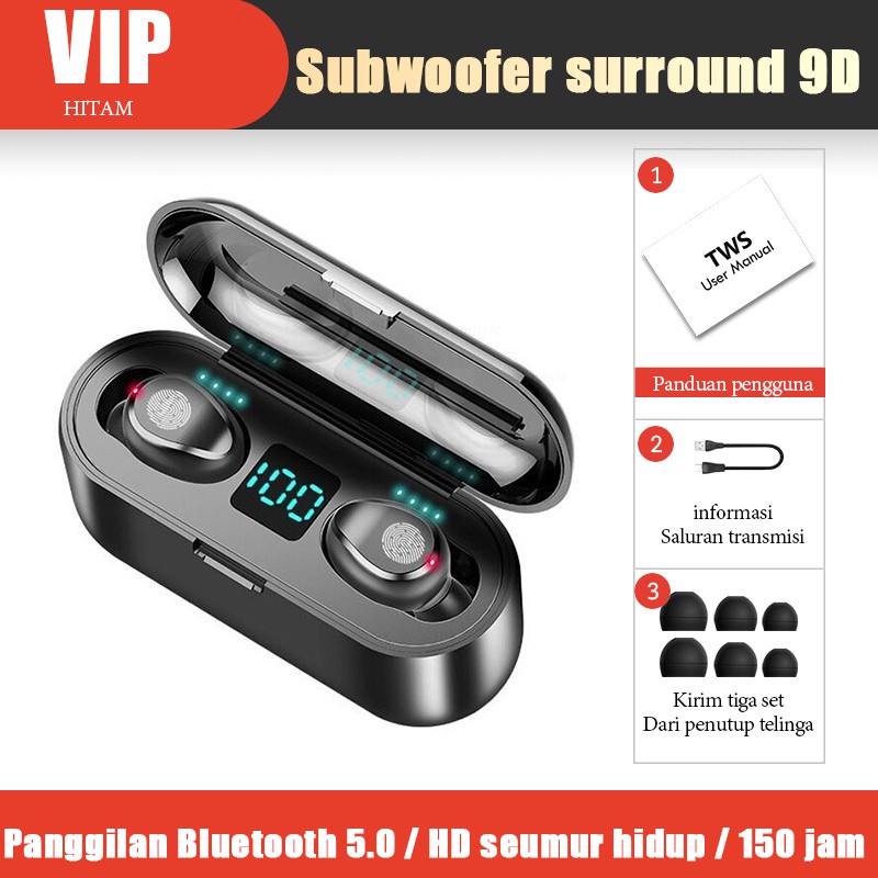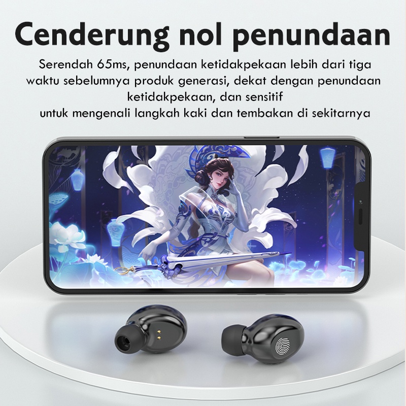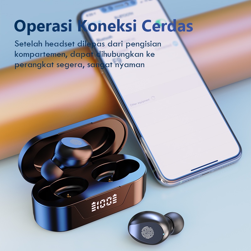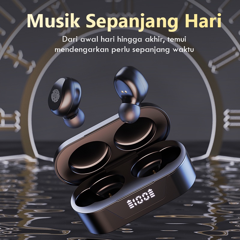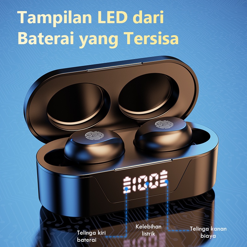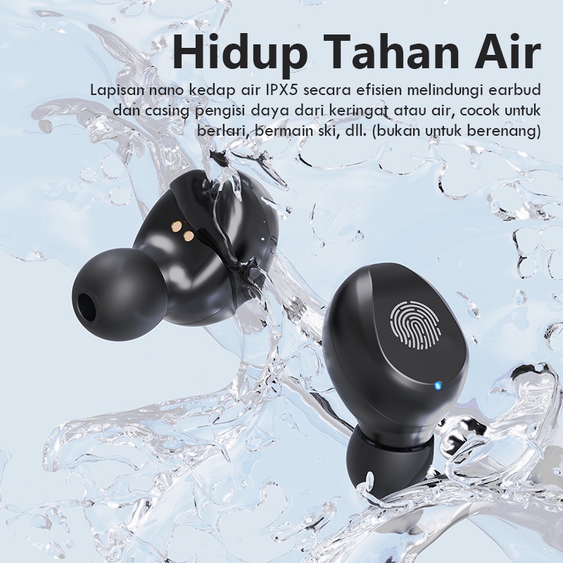 TWS Headset Bluetooth Wireless Earphone dengan Mikrofon Olahraga Kontrol Sentuh Earbud Musik