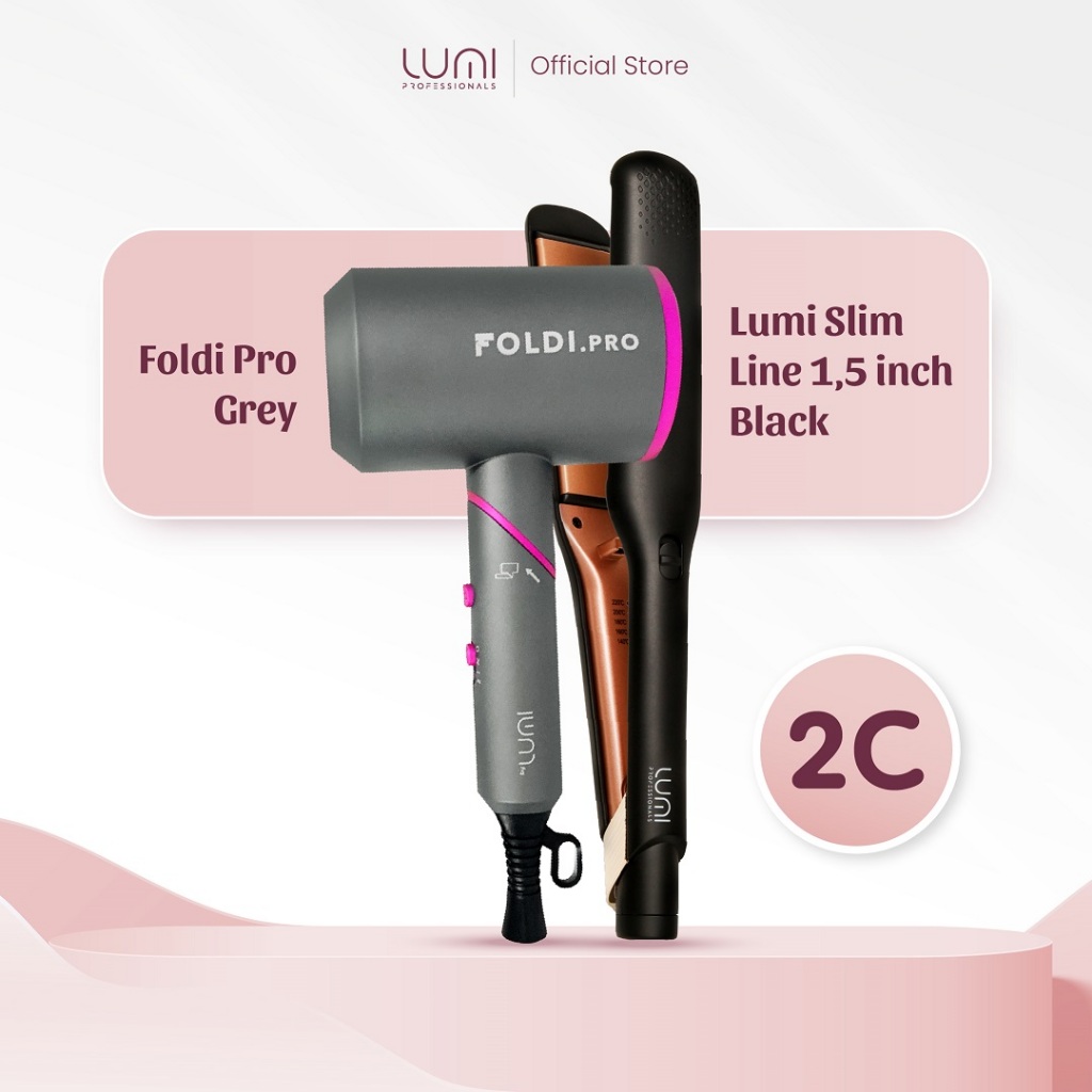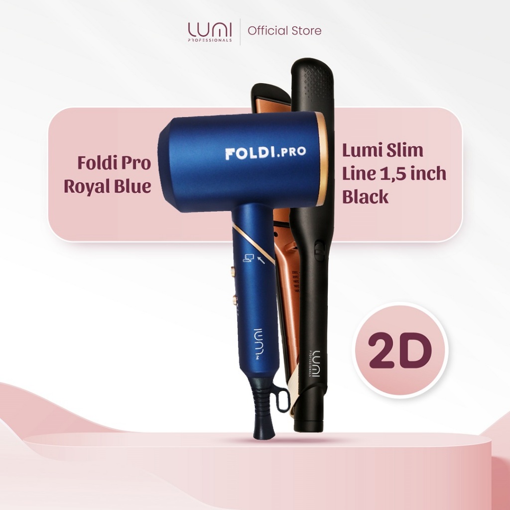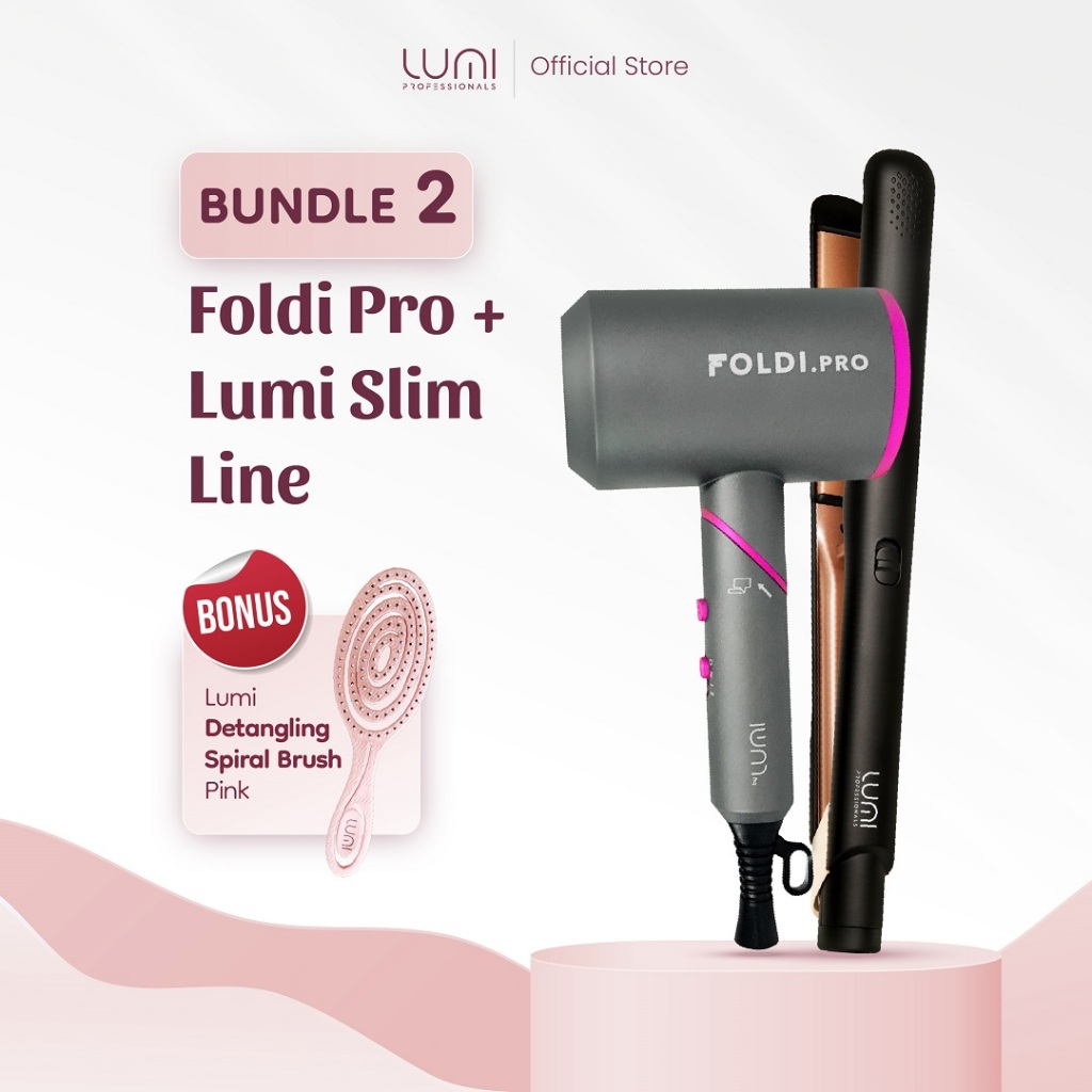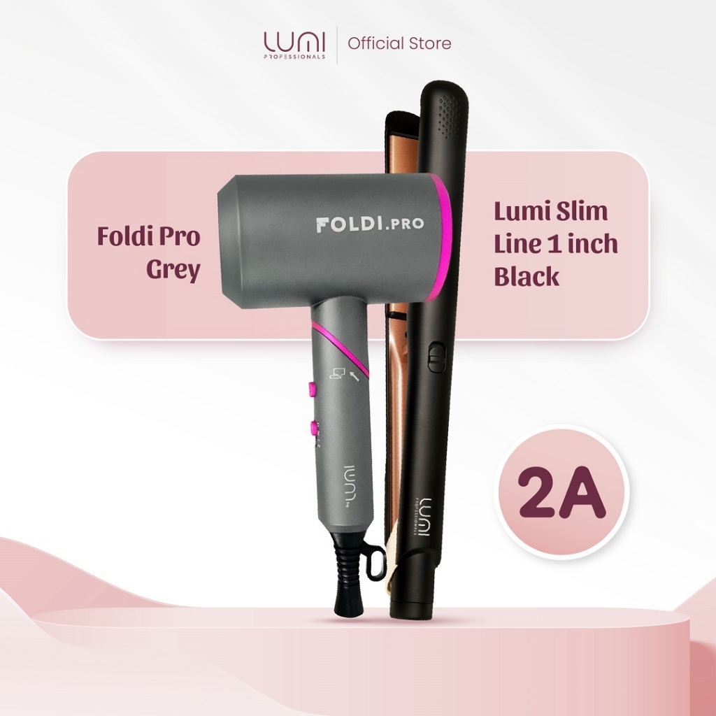 Lumi Bundle 2 - Foldi Pro Hair Dryer + Lumi Slim Line - Alat Pengering Rambut & Catokan Rambut