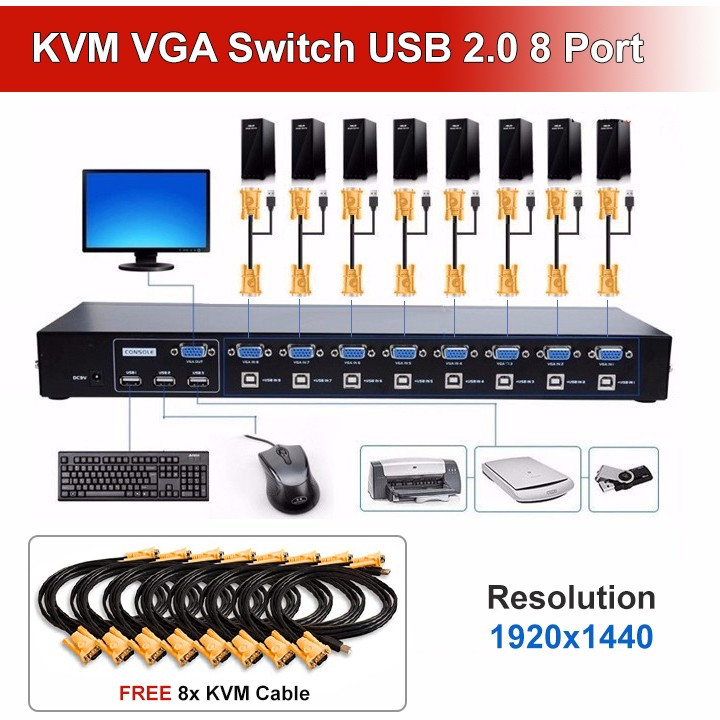 KVM SWITCH VGA USB 2.0 8 Port Free Kabel KVM 8 pcs