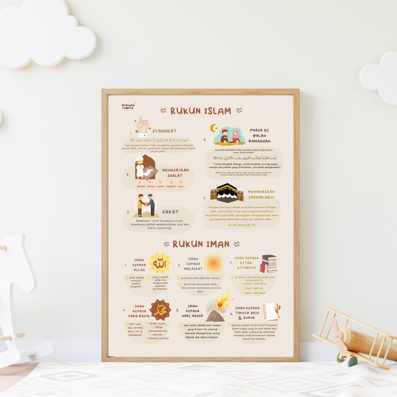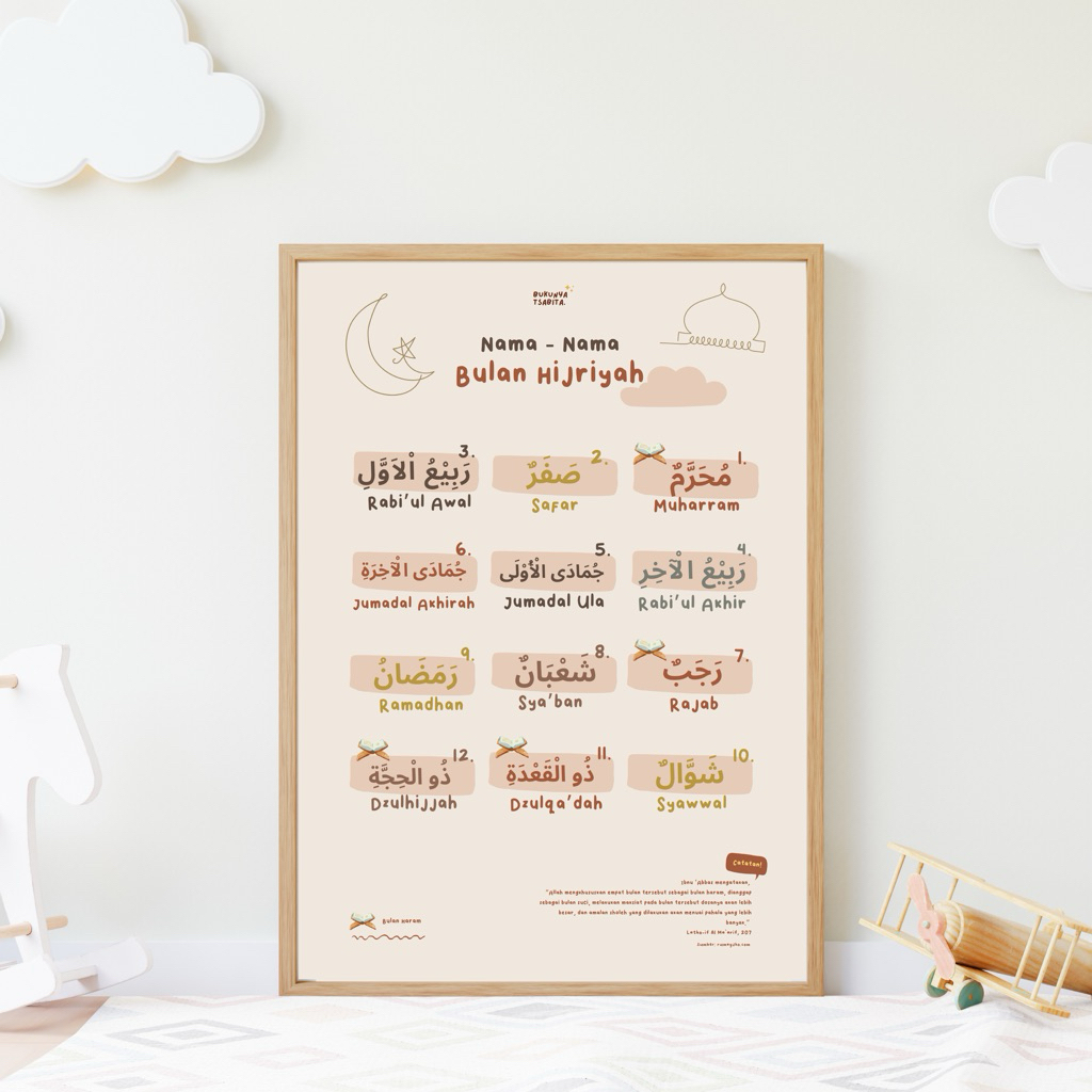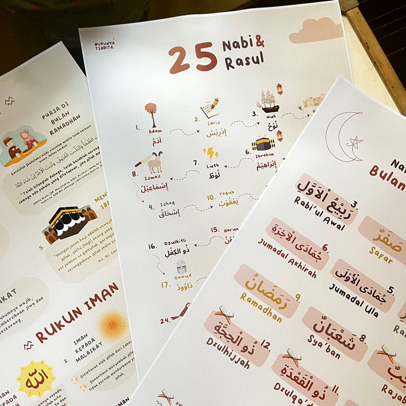 Poster Edukasi Anak Islami 25 Nabi dan Rasul Bulan Hijriyah Asmaul Husna Rukun Islam 10 Sahabat Nabi Doa Harian - Earth Tone Aesthetic Boho Sunnah Faceless