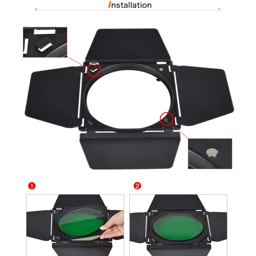 Godox Barn Door Lampu Studio Honeycomb Grid Reflector 4 Color Filter - BD04 - Black