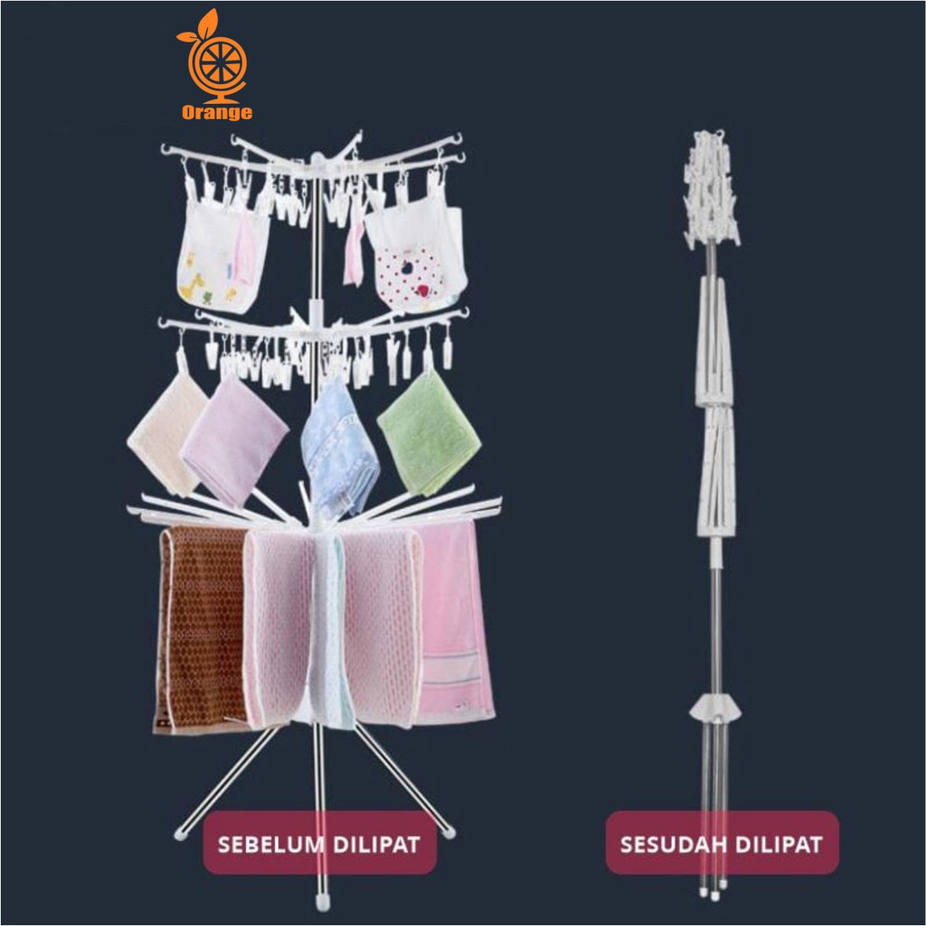 Worldhome Jemuran Menara 3 Susun Jemuran Baju Bayi Jemuran Kaos Kaki Celana Dalam Lipat Minimalis
