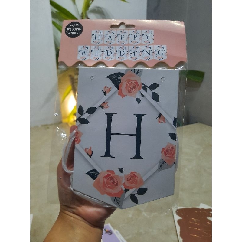 babalil Banner happy wedding hitam / putih bunga dekorasi lamaran engagement