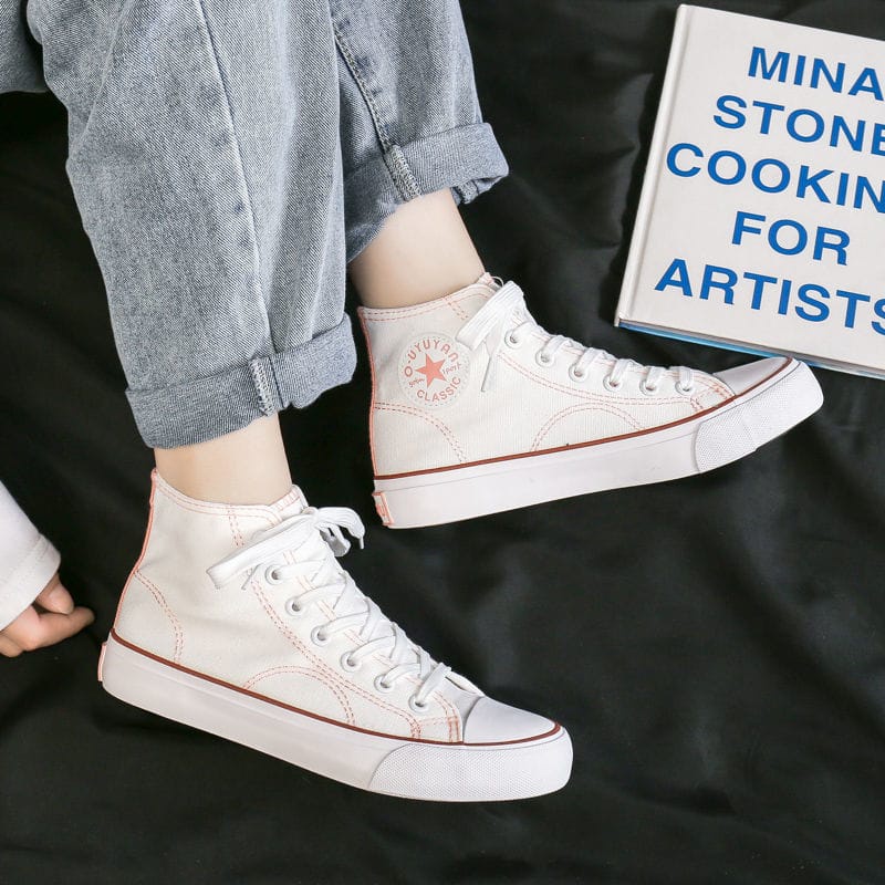IDEALIFESHOES SEPATU CEWEK CANVAS PINK HITAM KOREA STYLE SNEAKER PEREMPUAN TREND KANVAS TALI GROSIR SEPATU WANITA