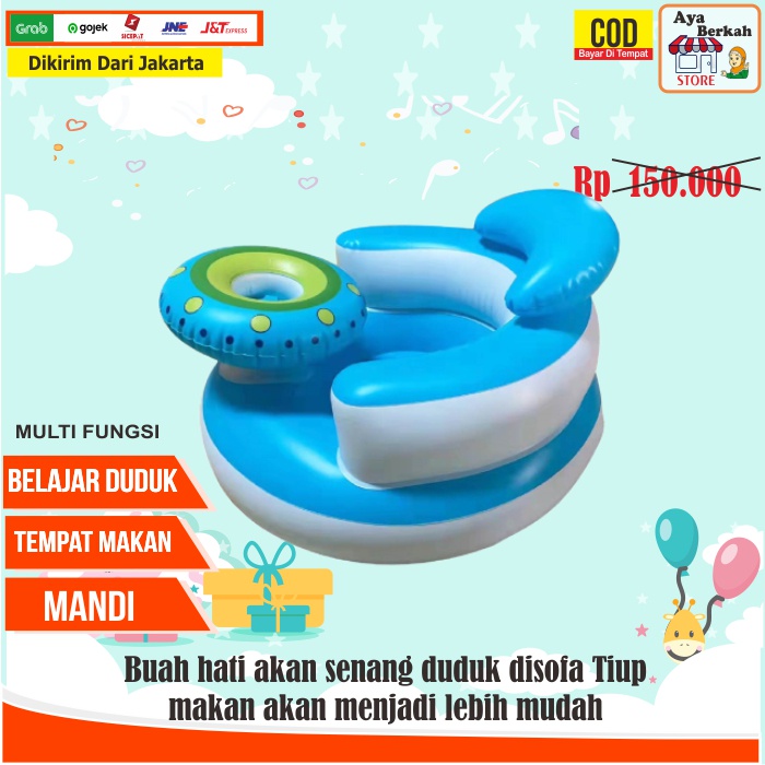 Sofa kursi tempat duduk bayi Mobil belajar duduk model pompa tiup Seat baby chair kursi makan bayi BIRU