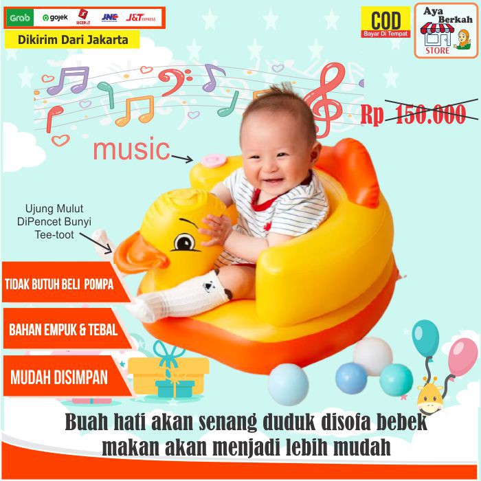 Sofa Kursi Makan Bayi belajar duduk balon Baby Chair Model Tiup Bebek Dengan Music Musik