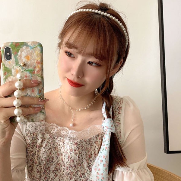 bando mutiara pita pearl floral hair band (1B3) jba046