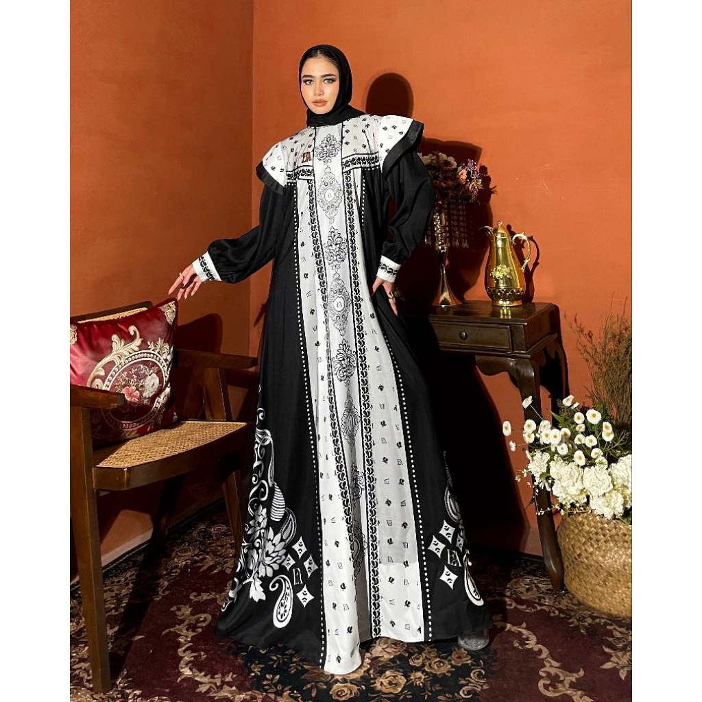 Amella Dress Material Lady Zr Mix Tule Pattern Exlusive By Elly Arsy Only Gamis (Tanpa Hijab)