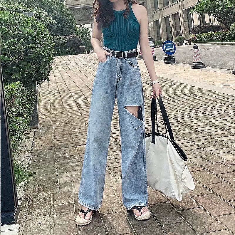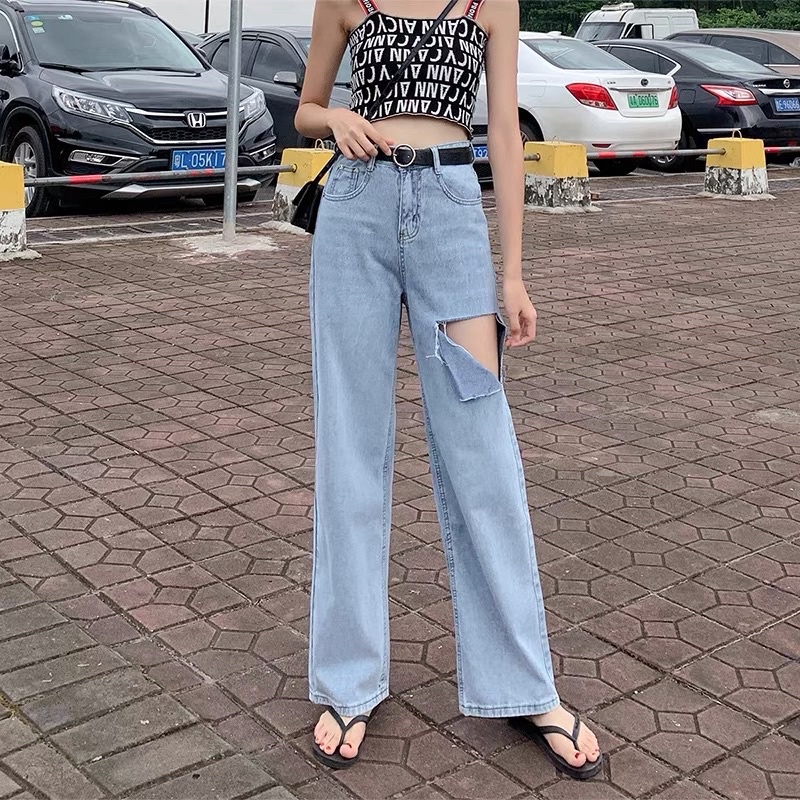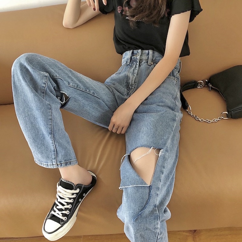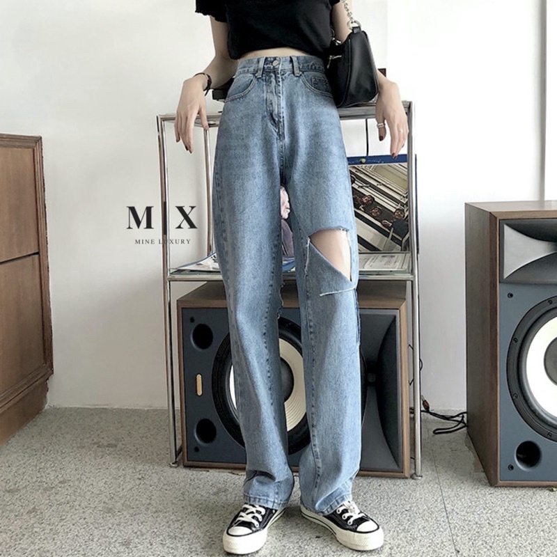 [CLEARANCE SALE] JEANS HIGHWAIST RIPPED HW CULLOTE KULOT BAGGY WANITA CEWEK CELANA PANTS MX809