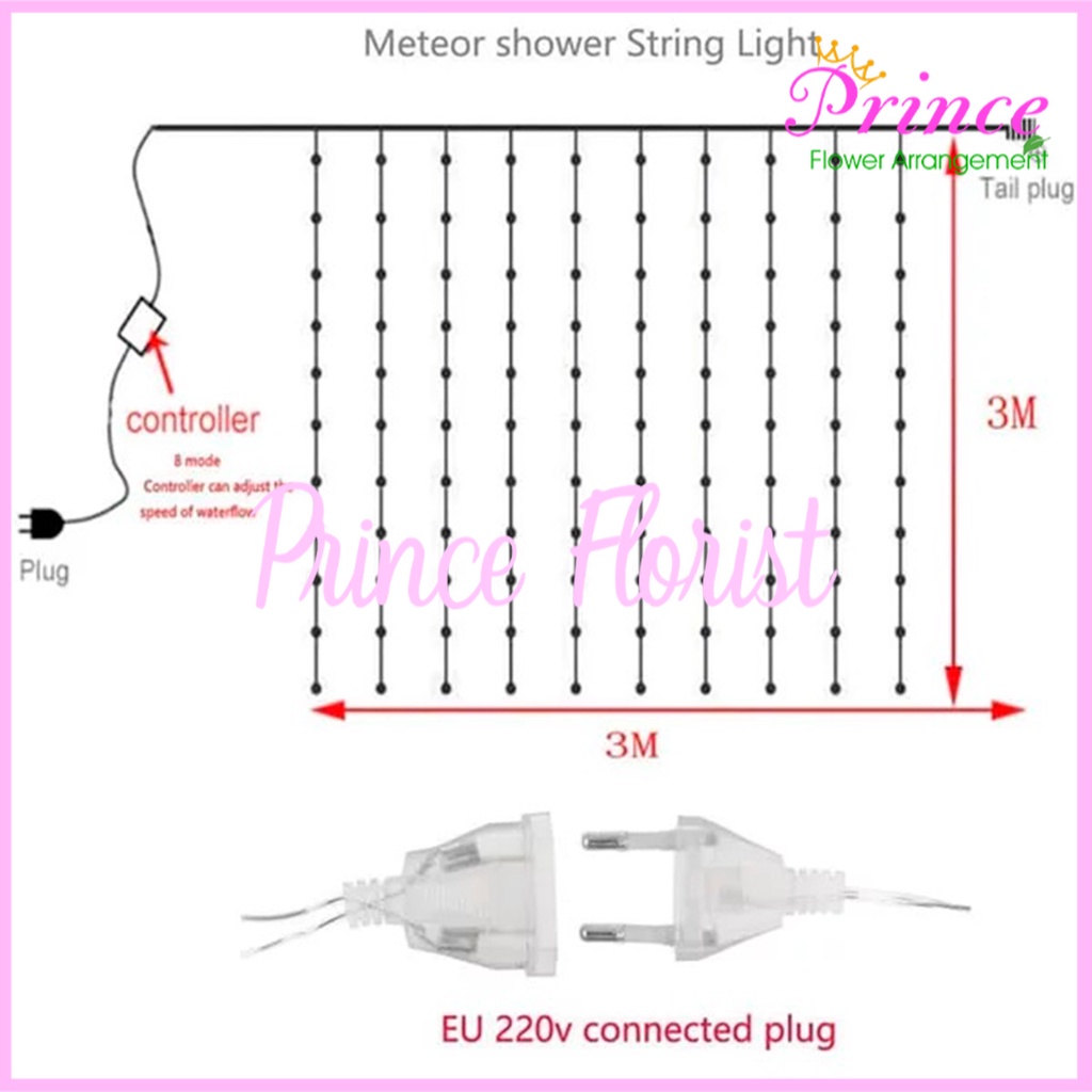 Lampu Tirai Led Air Terjun Dekorasi Waterfall Lighting Dekorasi 3x3 Hiasan Cafe,Pelaminan,Wedding Import