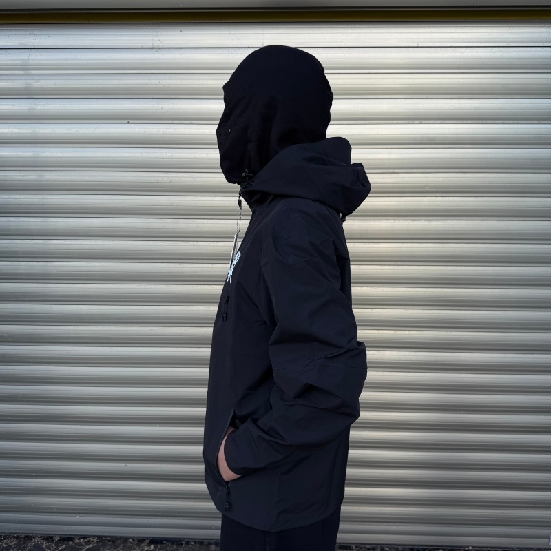 mertra - Monogram Shell Jacket (Black) - Water sensitive monogram pattern effect